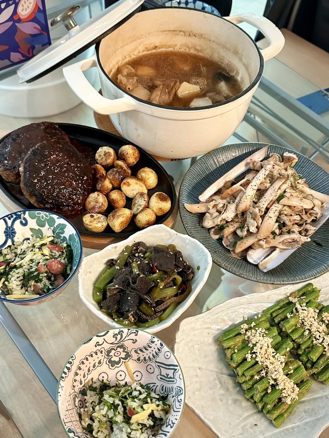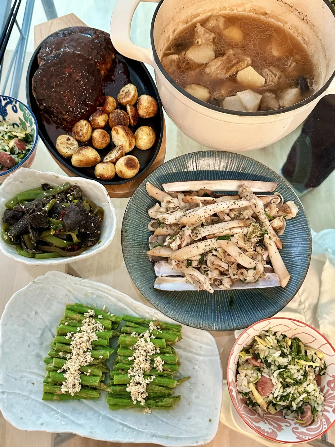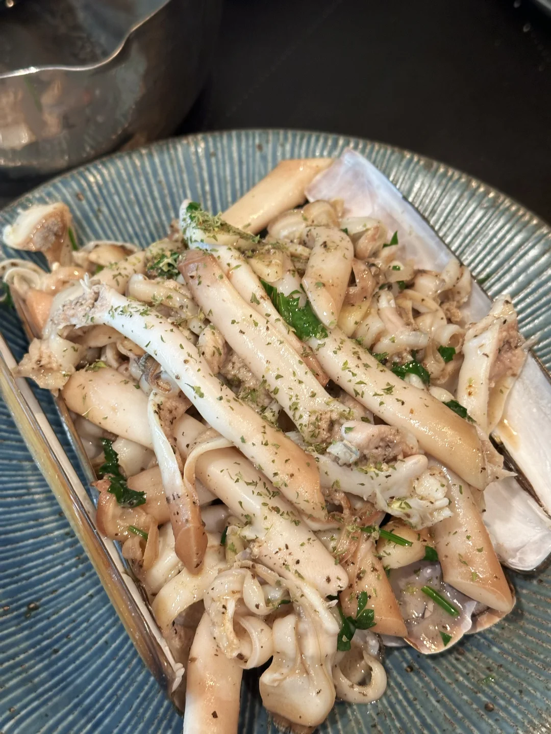 不愧是我们特意去法拉盛买的刀蚬,一如既往的肥美Q弹甘甜,其实和白葡萄酒焗青口的做法类似,但换成刀蚬口感好太多。