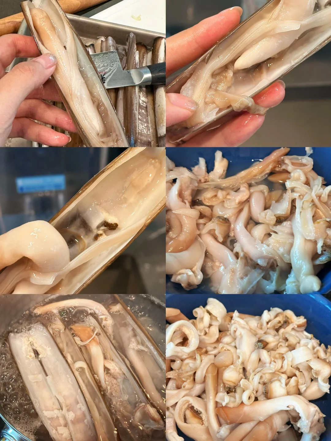 刀蚬吐沙后,一刀划开,把黄黄的腮去掉,把黑色的疑似泥沙的去掉(但整体都干净,所以弄起来不麻烦);