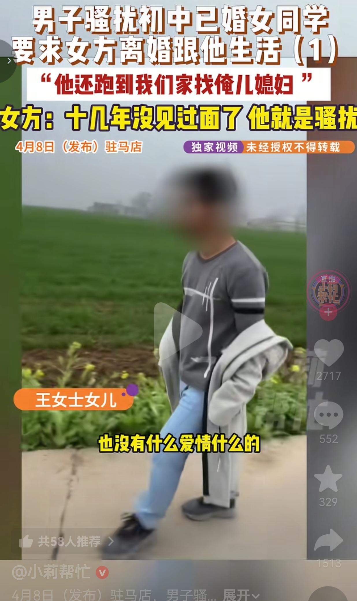 太没底线和原则了!河南一个大男人,明知初中女同学已经结婚生子,还疯狂骚扰人家,一
