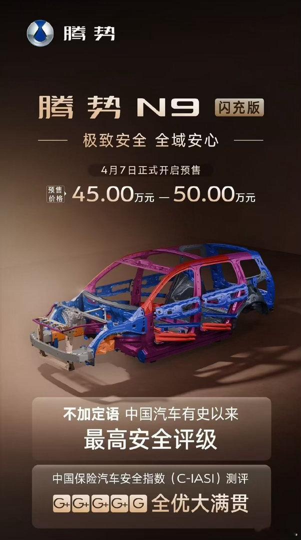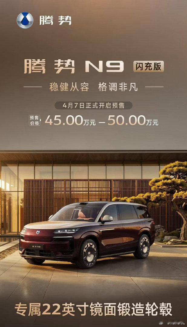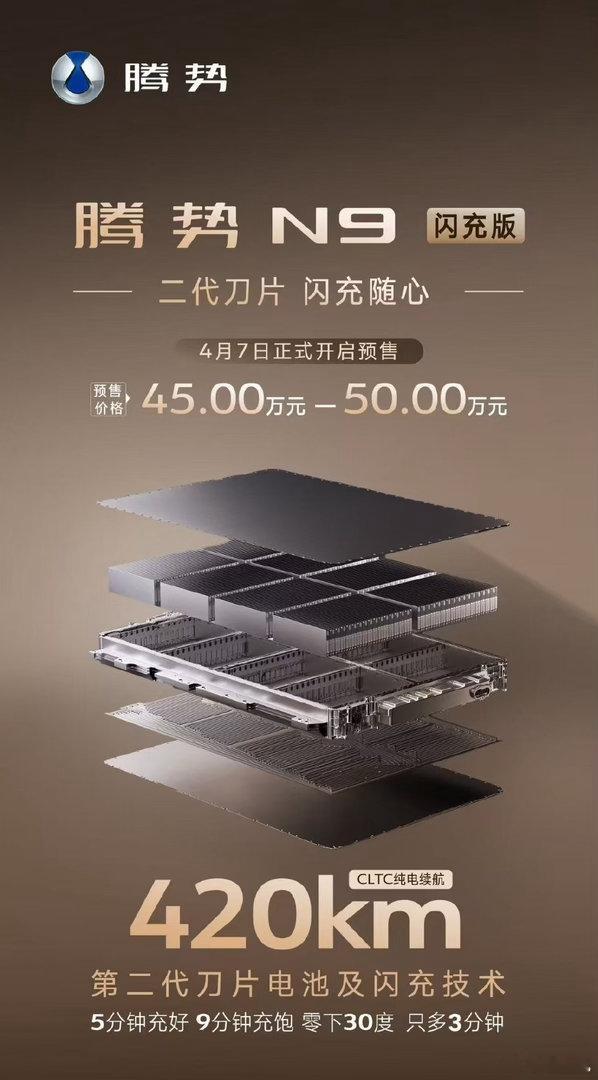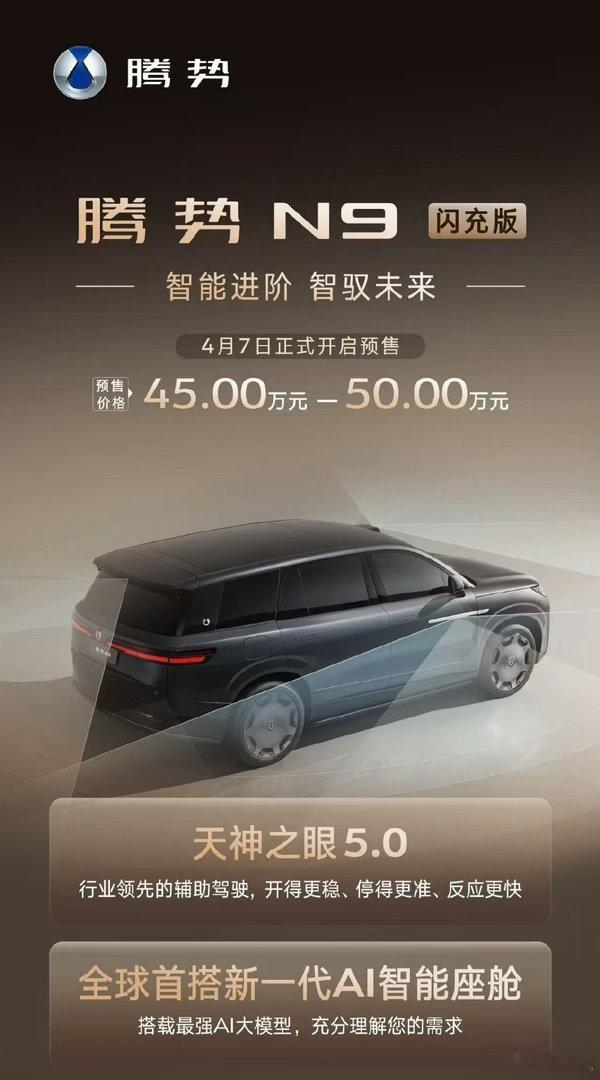 腾势N9闪充版正式开启预售,45-50万定价,看完配置属实有诚意。第二代刀片电池带来420km纯电续航,城市代步完全可以当纯电车型使用,日常通勤零油耗。闪充效率拉满,5分钟快速补能、9分钟接近满电,低温环境下表现依旧稳定,彻底告别补能焦虑。天神之眼5.0智驾、AI智能座舱全系标配,易三方平台搭配云辇A系统,5米2车身支持圆规掉头与横向蟹行,灵活度与舒适性双双拉满。预售还赠送18个月免费闪充权益,对比同价位竞品,技术下放与权益福利都很到位,高端新能源市场再添硬核选手。大v聊车