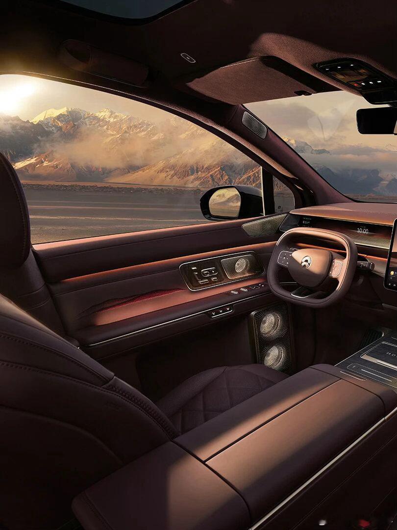 之前总说中国元素,这次ES9是真的跳出了符号堆砌,把东方美学做进了细节里。座舱里用非遗苏绣做的河山锦绣,凑近看针脚特别细,意境也很到位,把东方的细腻和大气都做出来了;还有「风生水起」音响罩配水光氛围灯,亮起来的时候真的很有中式氛围感,既有古典诗意,又有好彩头,审美特别贴合咱们国人的喜好。