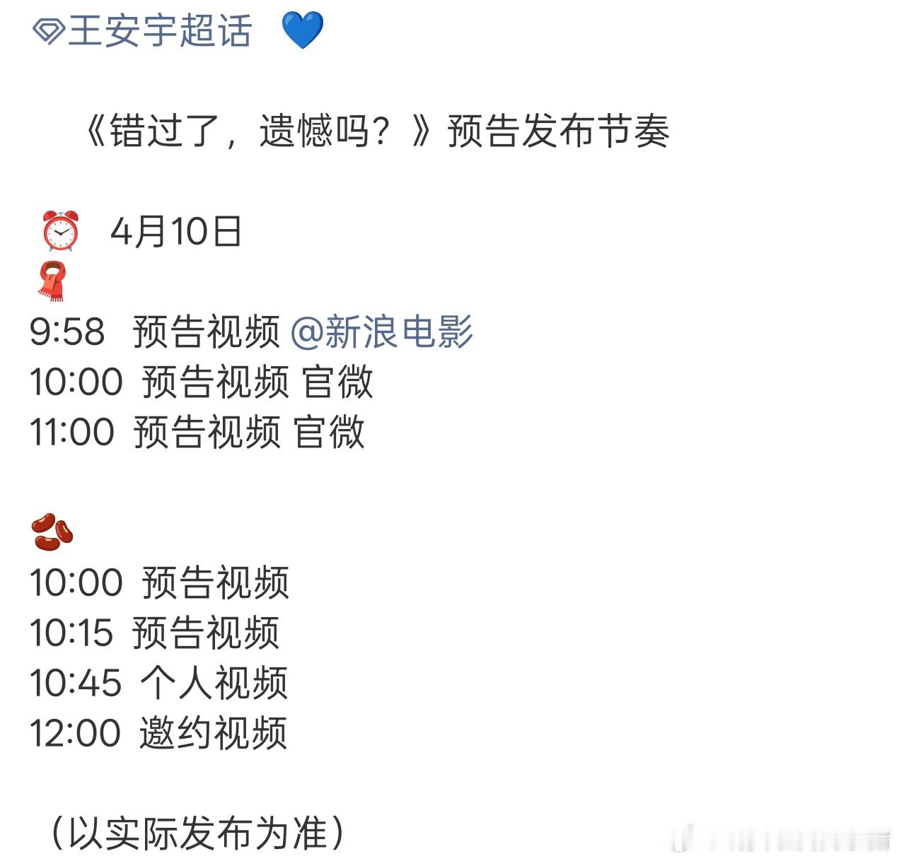 王安宇友情主演电影错过了,遗憾吗明日将发布全新预告,期待王哲远