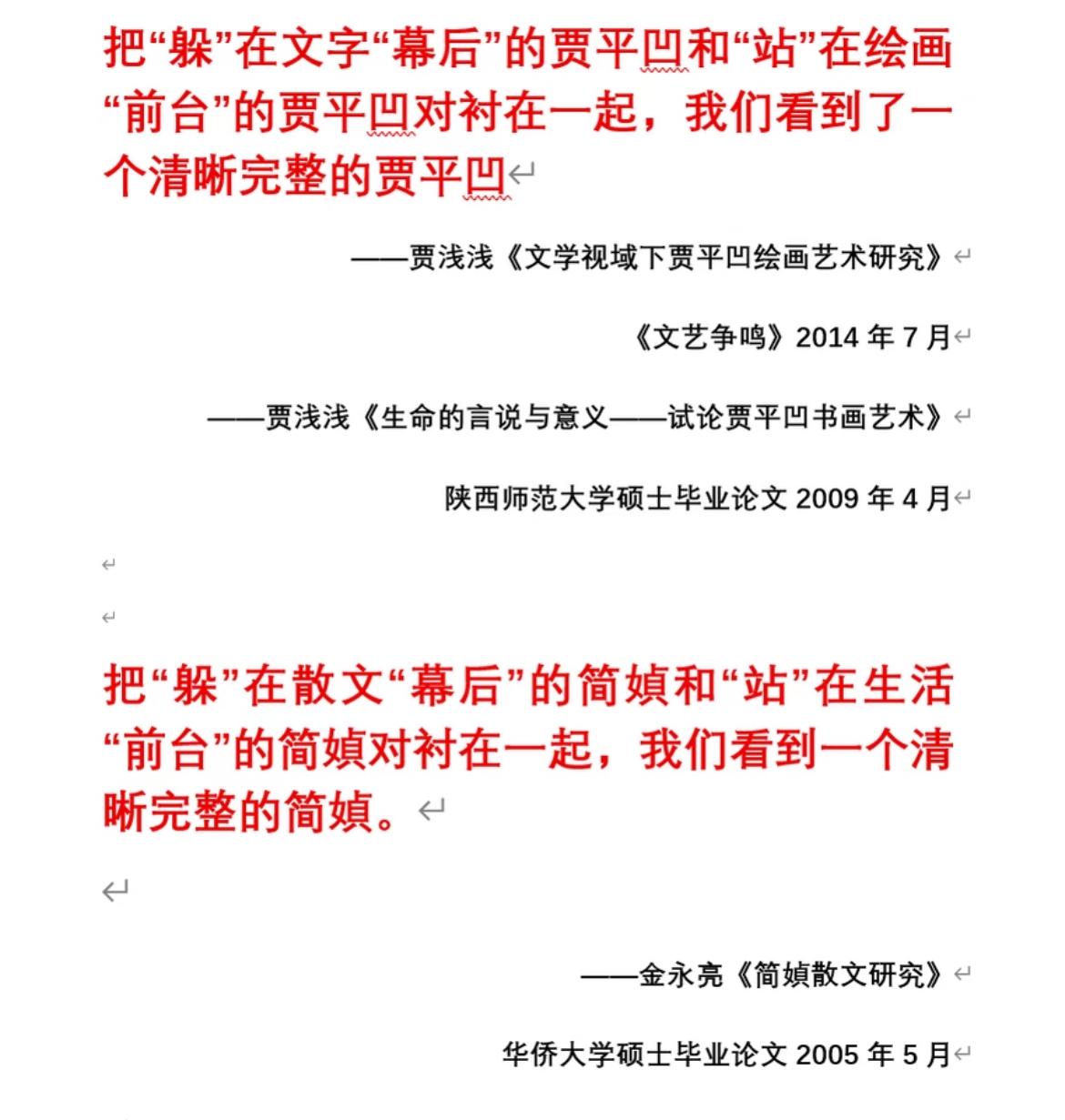 而且贾浅浅她连开头都不会写,全靠脑子够“活”,她另辟蹊径去“借鉴”别人研究简媜散文的结论,然后一招乾坤大挪移!把别人研究简媜散文的结论“心安理得”地用在自己研究老爸的论文上。