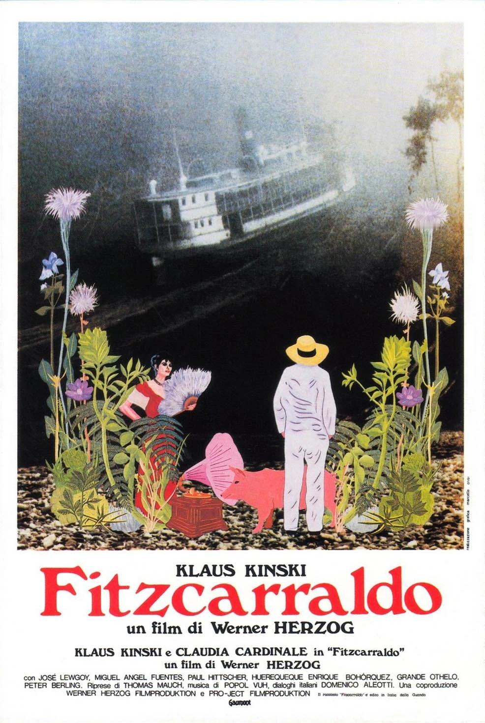 其中,《陆上行舟》是赫尔佐格国际声誉最高、最具标志性的作品,影片取材自真实事件:爱尔兰裔秘鲁商人菲茨卡拉尔多痴迷歌剧,为在亚马逊丛林建歌剧院,计划拖着一艘 320 吨蒸汽船翻越安第斯山脉与雨林分水岭,以打通两条河流航道,最终以疯狂执念对抗自然与现实,以悲剧收场。影片全程实拍、无特效,剧组真的将巨船拖上陡峭山坡,拍摄过程充满暴力、冲突与生命危险,本身就是一场陆上行舟,成为影史最著名的“疯狂拍摄事件”。