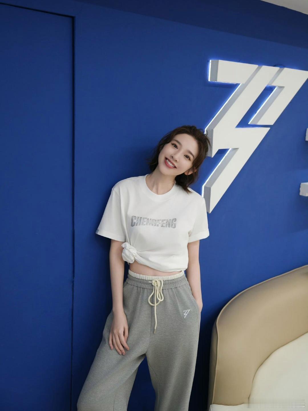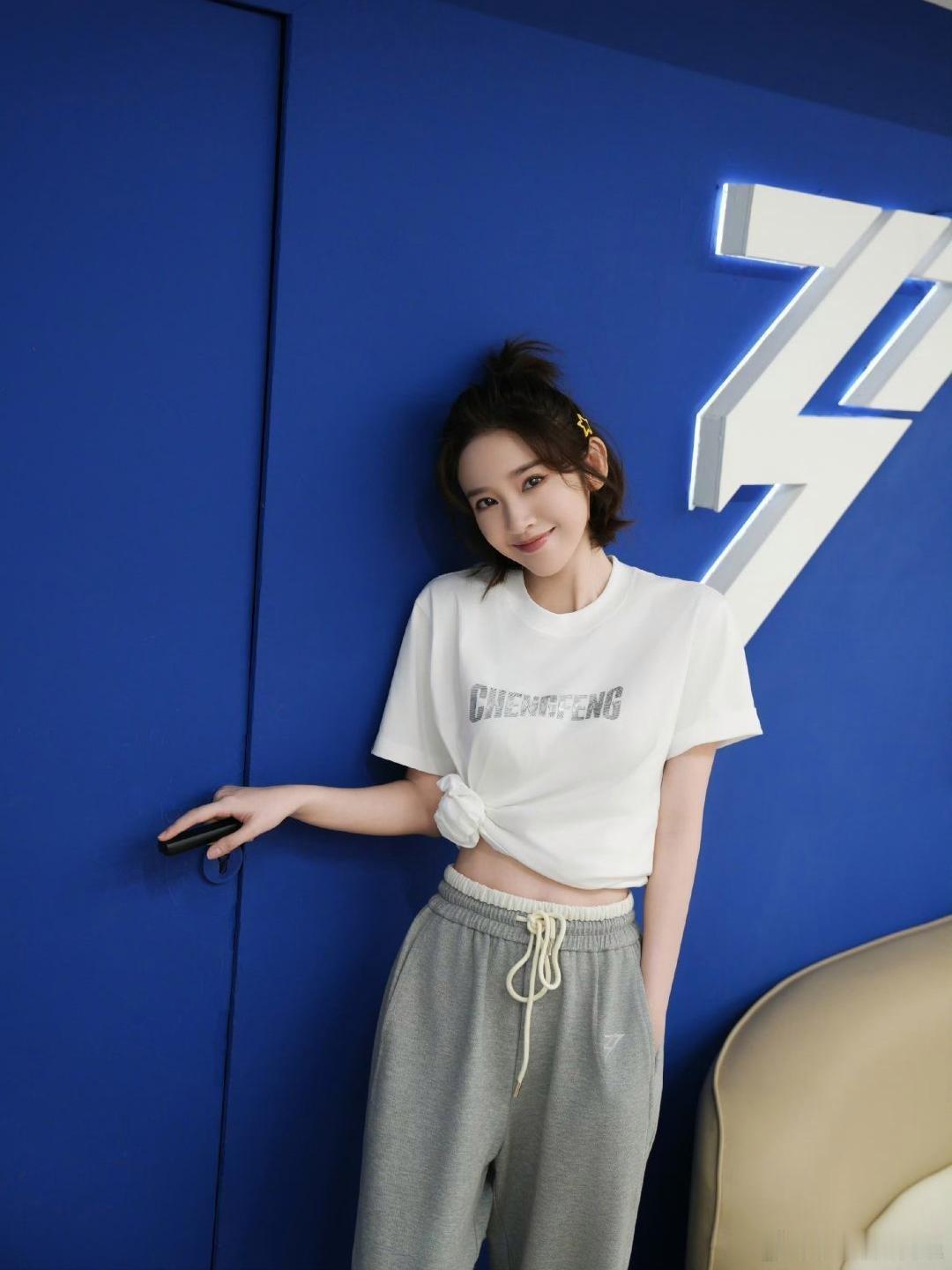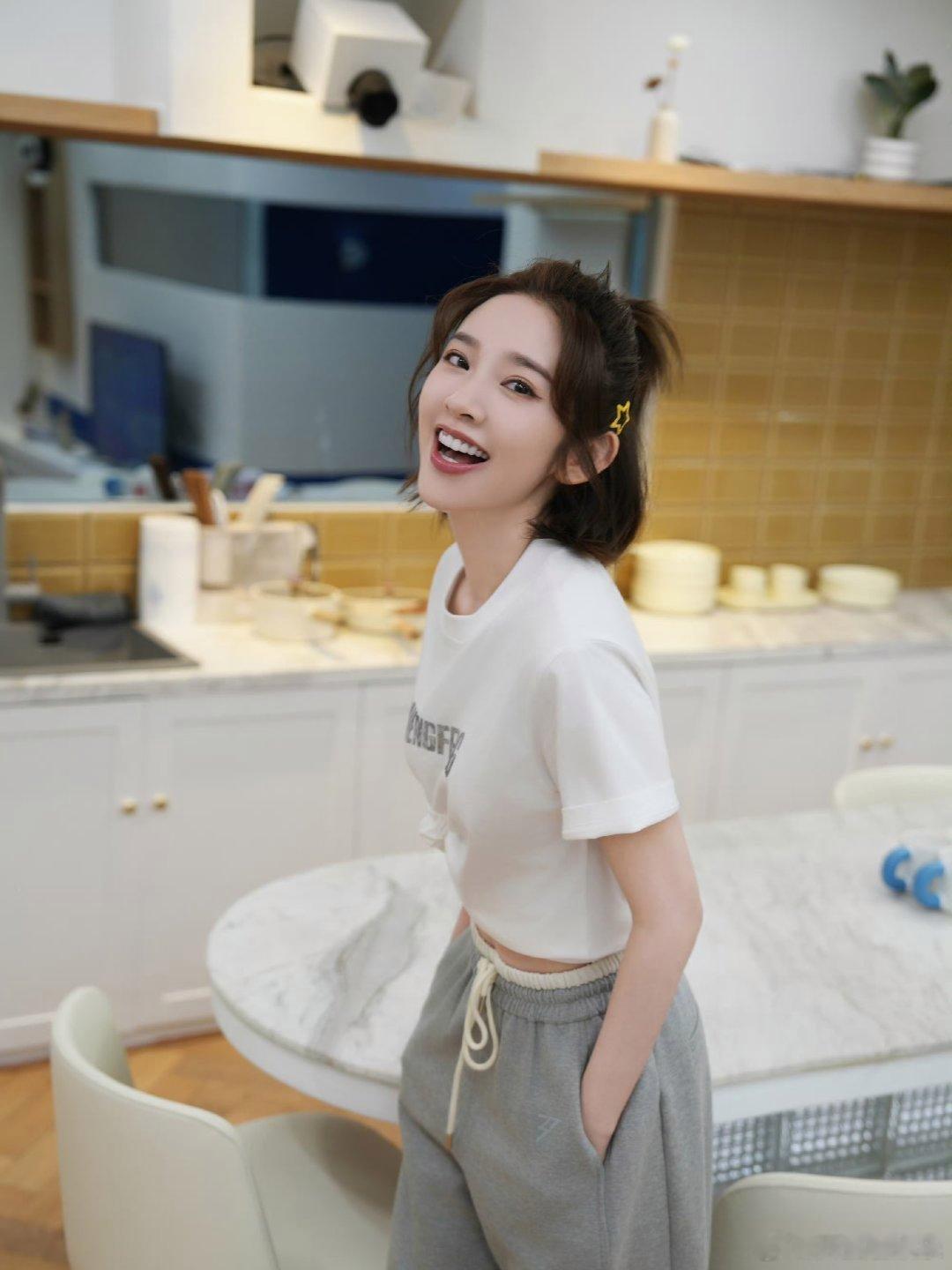 唐艺昕白T恤侧边打个结,悄悄露腰线,比例超好。搭条灰色阔腿卫裤,慵懒又舒服。丸子头清爽,小白鞋百搭。看着随意但超减龄,日常出门直接抄作业,少女感轻松拉满。