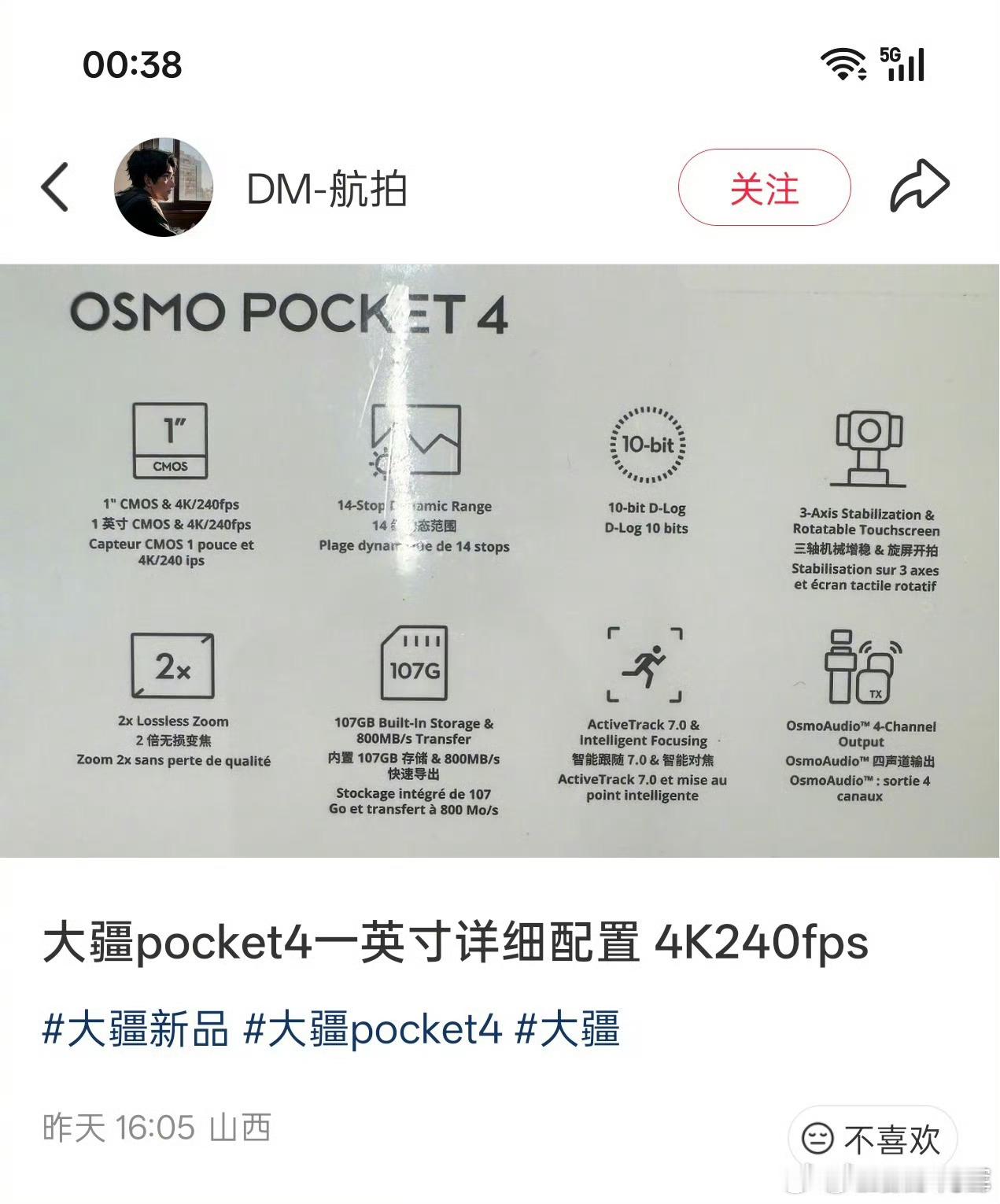 大疆Pocket4这么快就来了,我的pocket 3才刚买没多久,不过感觉够用了,就是续航时长差点意思大疆Pocket4