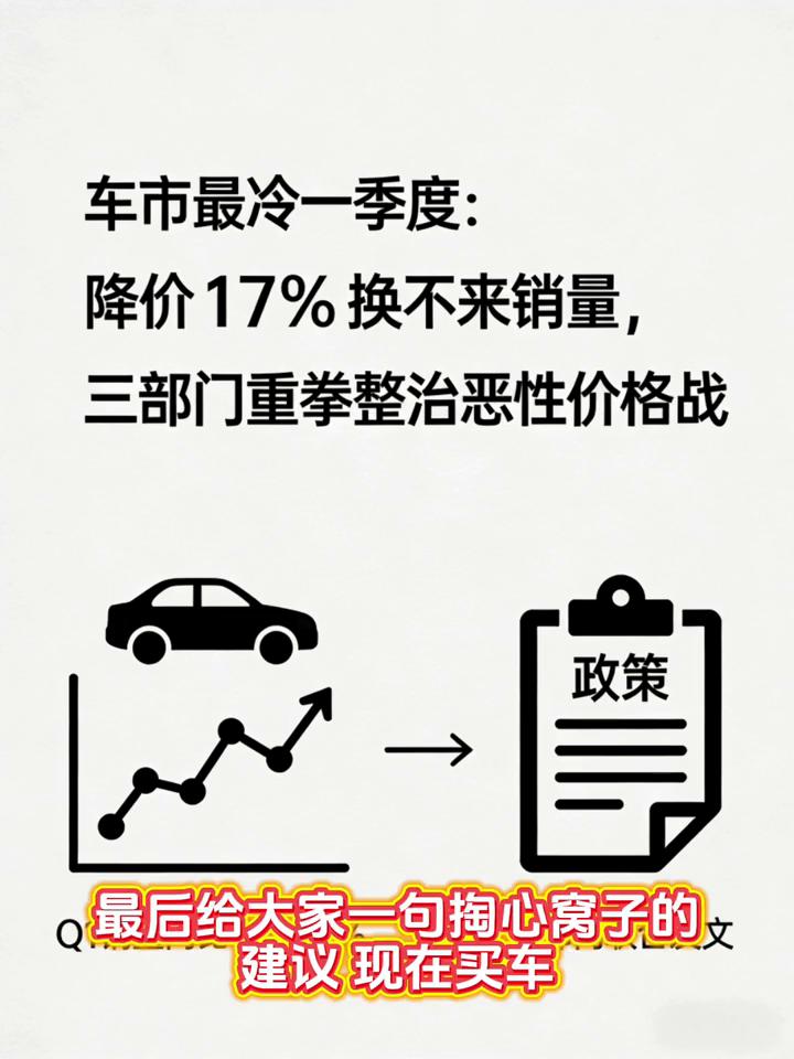 车市最冷一季度:降价17%换不来销量,三部门重拳整治恶性价格战。 最近想买车的这