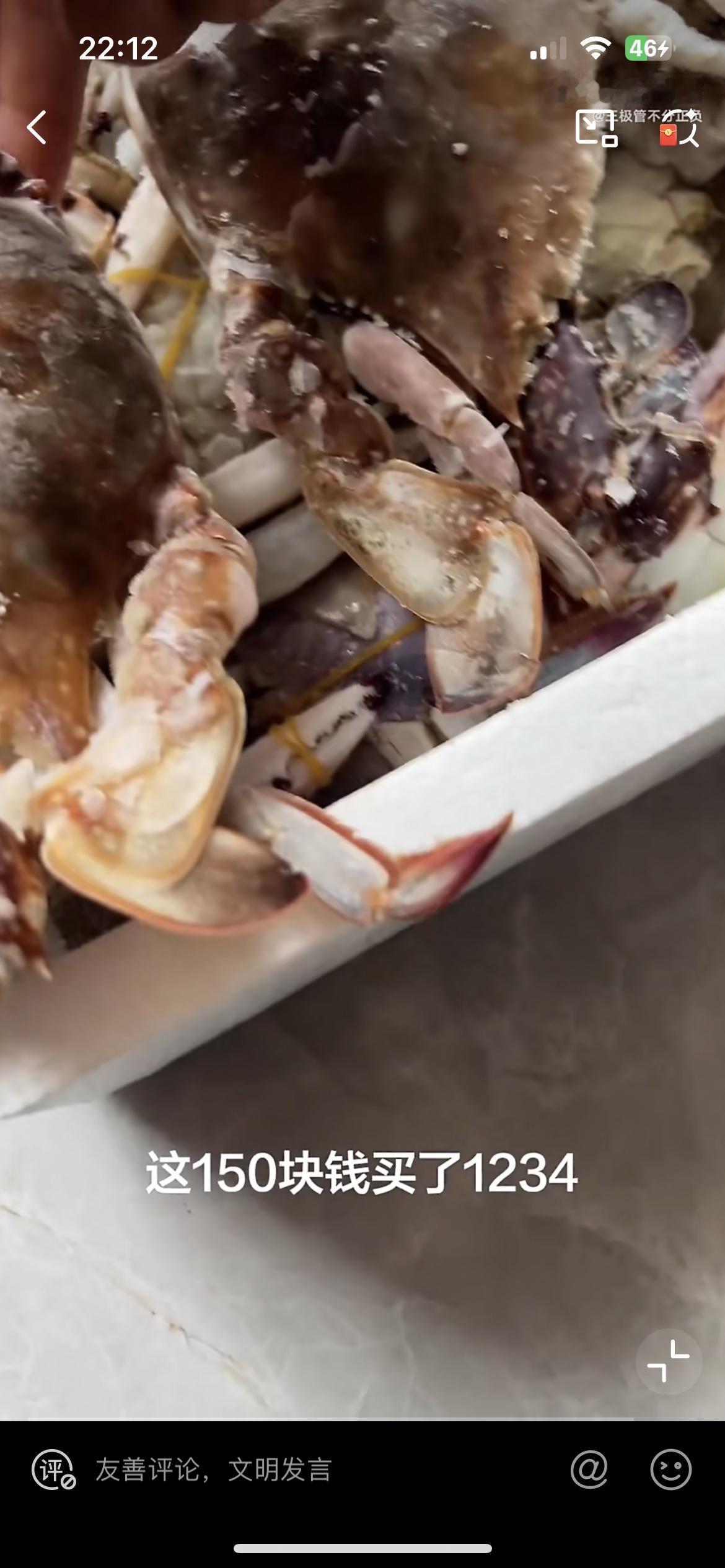 大哥说他本来想进一批货回老家卖的,因为家里行情不好,就想便宜把它处理算了。一盒虾 100,一盒蟹也是 100,每斤蟹和虾才划 10 块钱一斤。