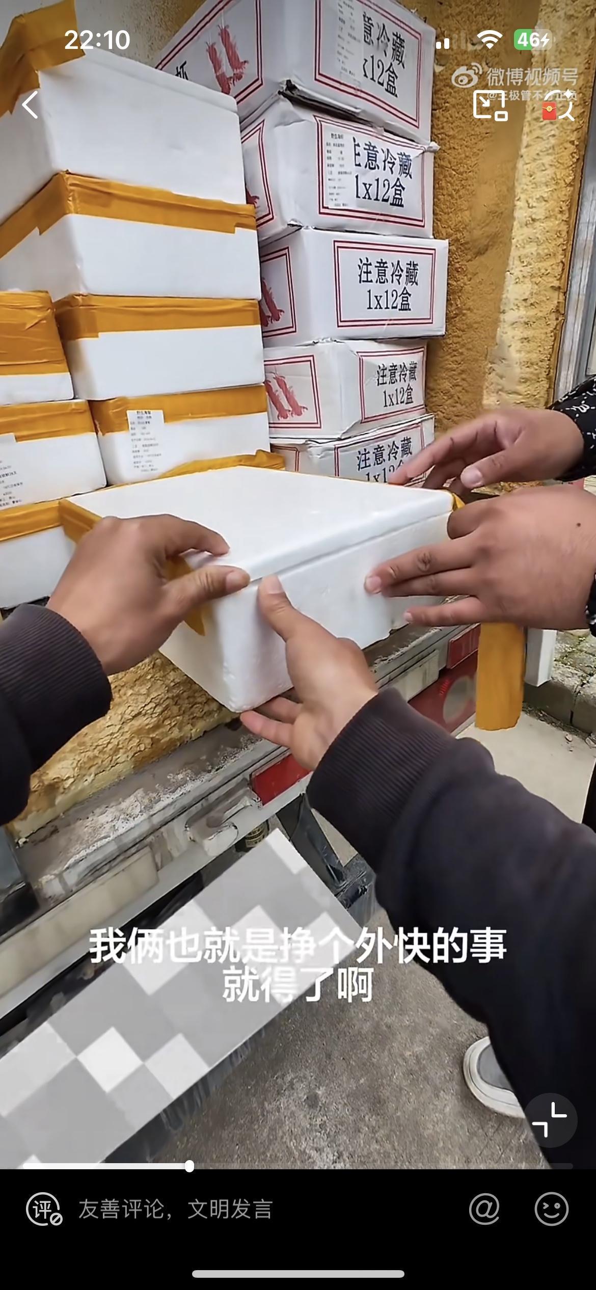 老板说这些都是亏的要滴血了,问小伙要不要带点回去吃,小伙说太多了吃不完。大哥说我便宜点给你,本来要卖 200 的,现在 150 给你算了。小伙说要不了那么多,大哥也不管那么多,直接搬了两盒放到他的电瓶车上。小伙脸皮薄,也不好拒绝,就扫了 150 块钱给这位老板。