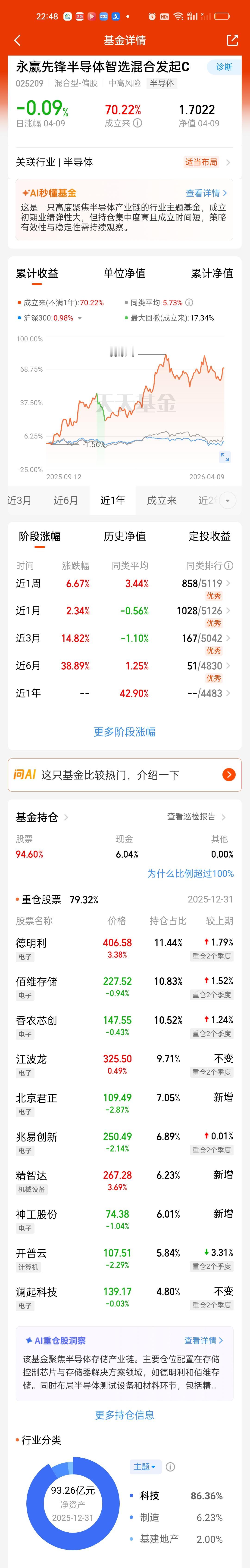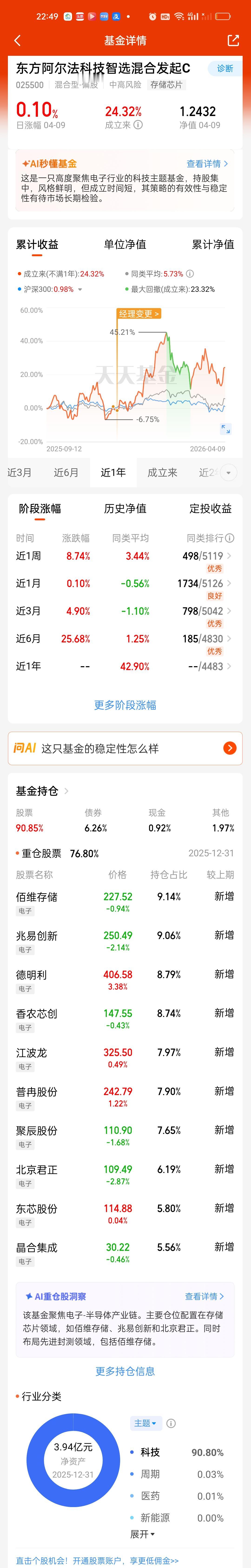 就广发远见今天的持仓来看是根本开不了这么高的净值的,只有一种可能,那就是调仓换股了。它的基金经理也多次强调持有光纤这个细分领域。而当前的持仓是以存储芯片为主,两只存储芯片正牌基,先锋开跌0.09%,阿尔法开涨0.10%,都明显低于广发远见的2.92%,所以这里可以确认调仓换股了,今天涨停的这只光纤股大概率调进了最新的前十大重仓股,下周就要公布2026年第一季度持仓了。不信我们下周末拭目以待!