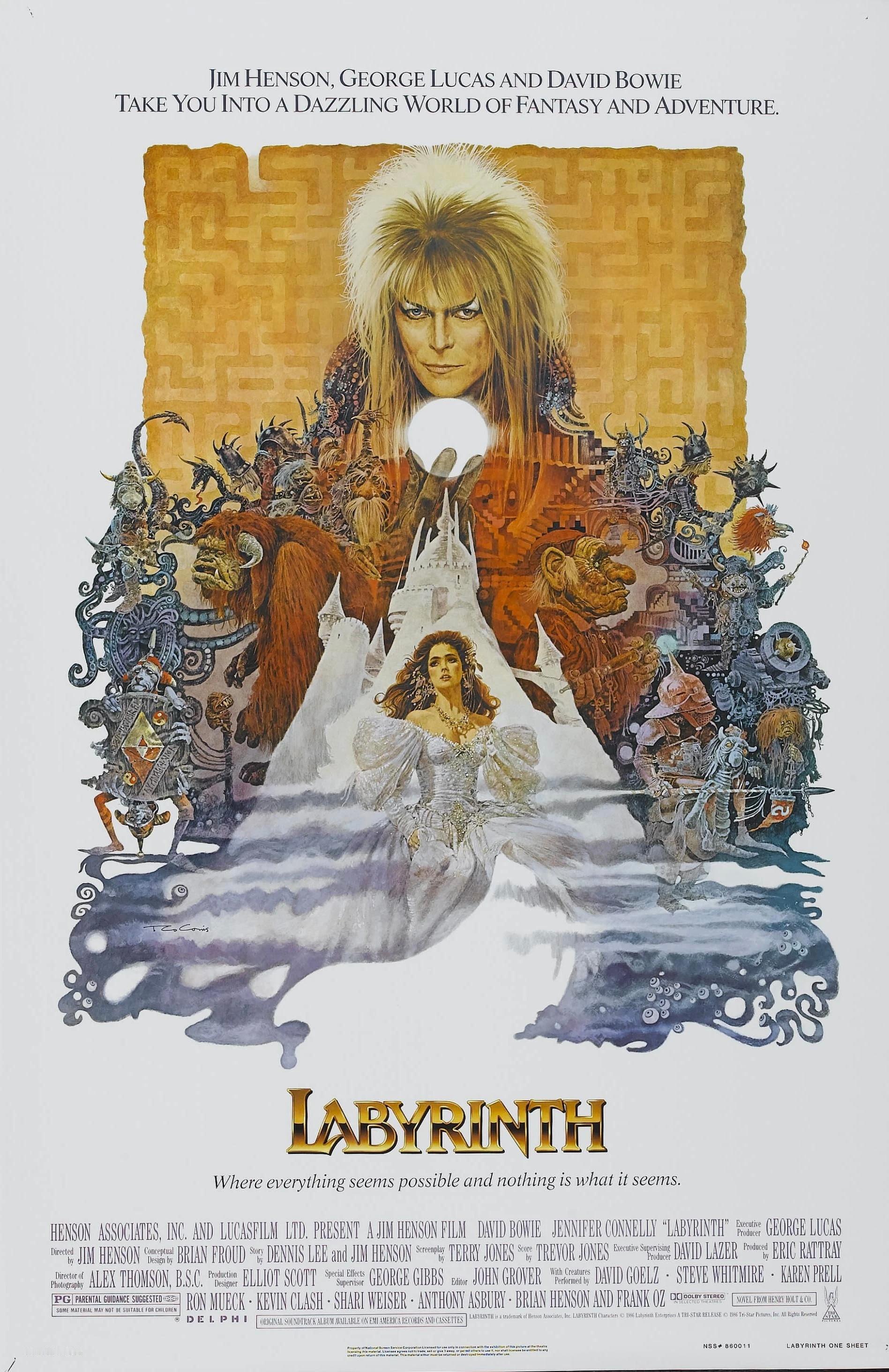 其中,有一部叫《魔幻迷宫》的4K修复版本可能不为大家所熟知,该片是由吉姆·亨森执导,大卫·鲍伊、詹妮弗·康纳利等主演的英美合拍歌舞、家庭、奇幻电影,乔治·卢卡斯担任制片人。英国著名摇滚音乐家大卫·鲍伊在其中顶着一头杀马特发型扮演小妖精国王,看过《战场上的快乐圣诞》中的杰克,不妨可以再看看他在本片中的另类尝试。