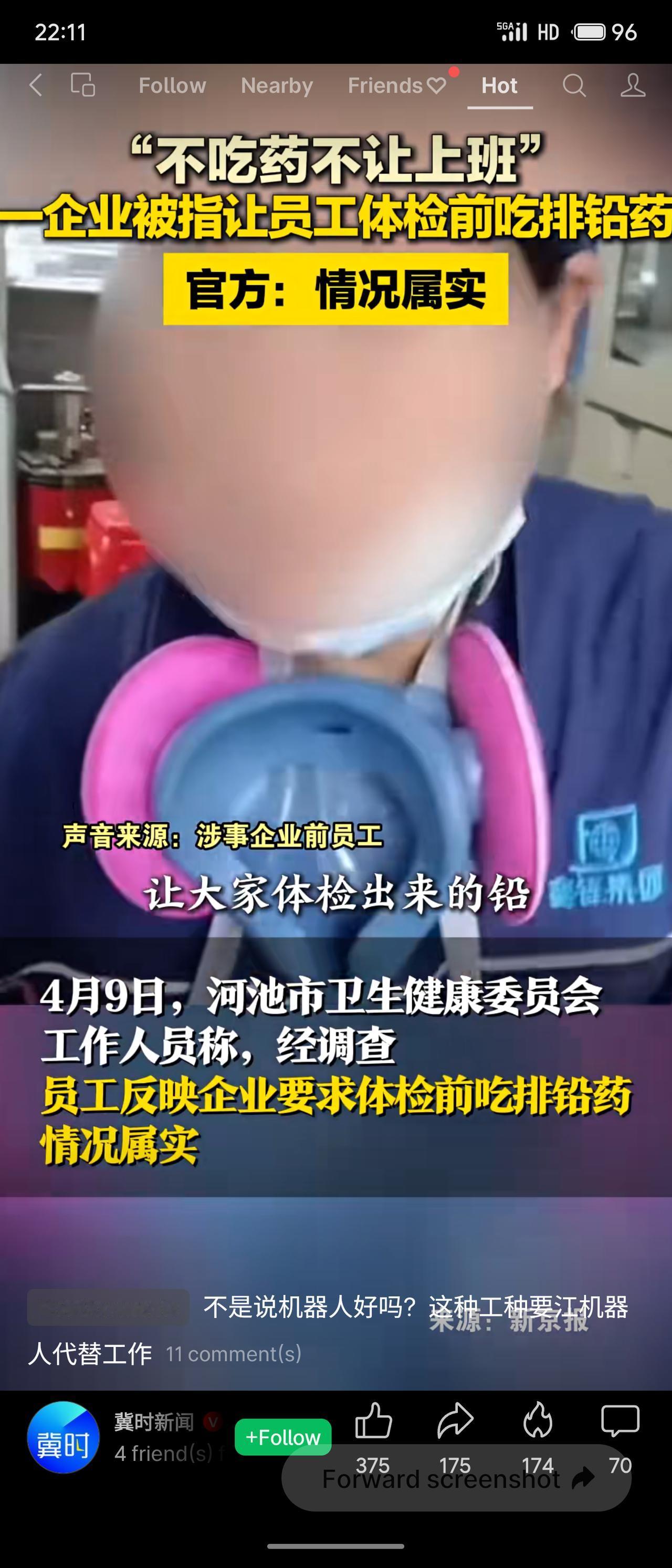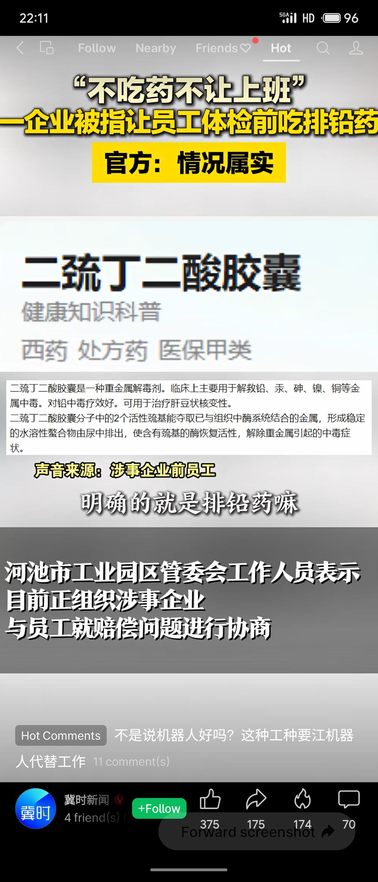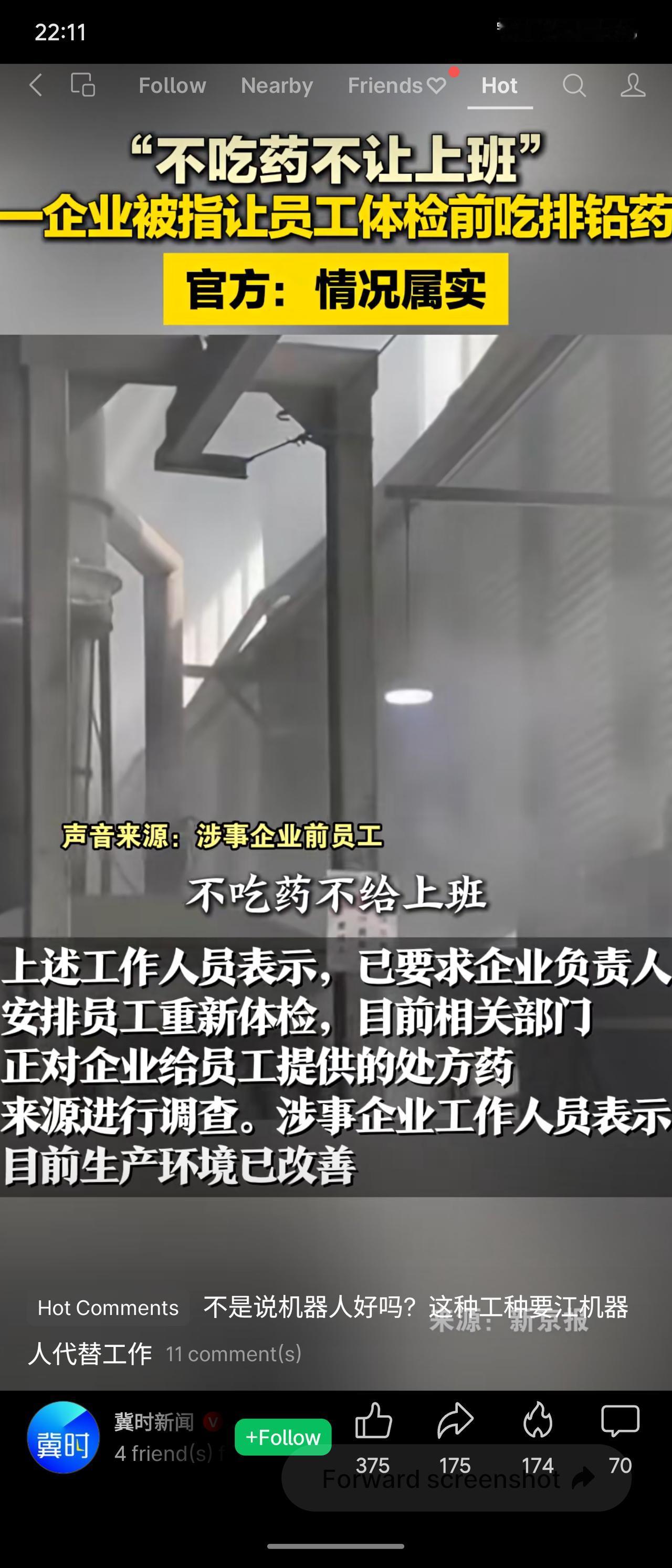 广西某蓄电池生产企业为让员工通过职业健康检查,强迫其在体检前服用排铅药(二巯丁二酸胶囊),甚至“不吃药不让上班”。官方调查确认情况属实,已要求重新体检并调查处方药来源,园区管委会正组织赔偿协商。