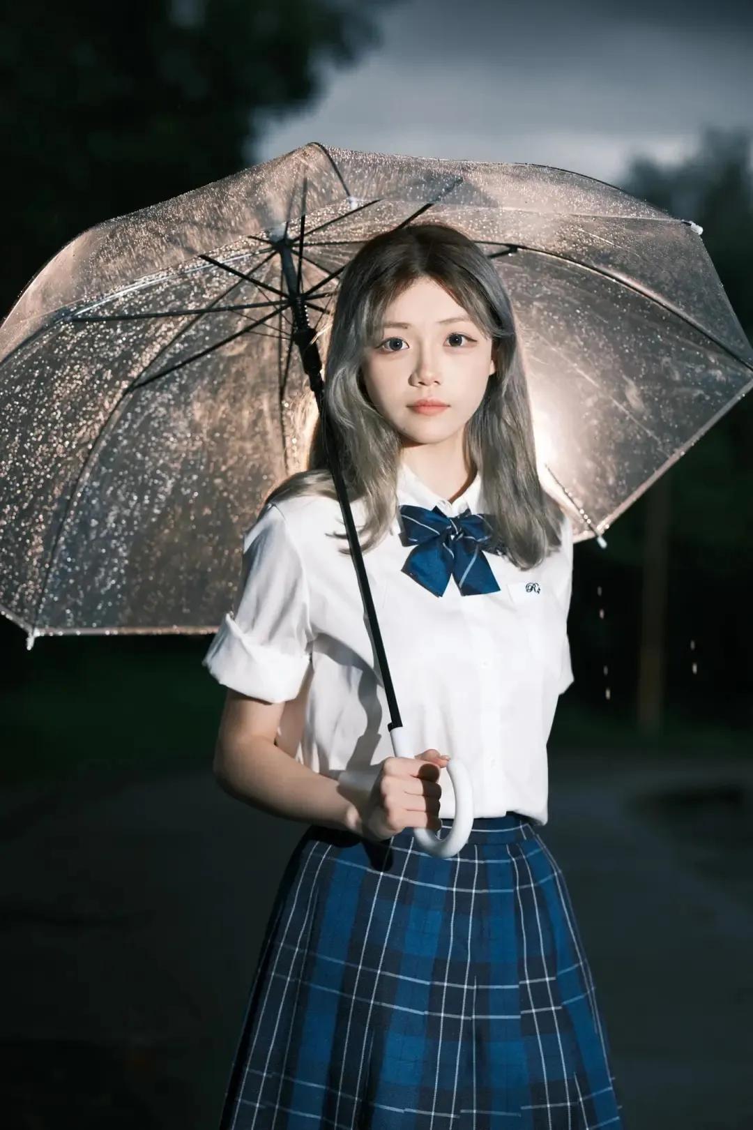 蓝白色的夜雨