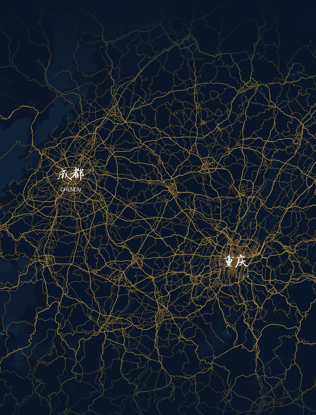 成渝双城经济圈区域地图,看道路密集区域就是城市了。重庆成都双城经济圈是中国可持续发展的肾脏,是战争打到最后的底气。