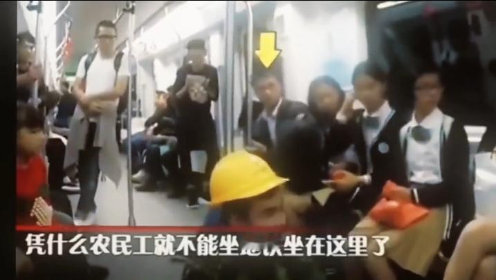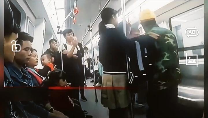 地铁女子嫌农民工身上有异味 要求换车厢 被学生当场劝阻 地铁车厢内,一名衣着
