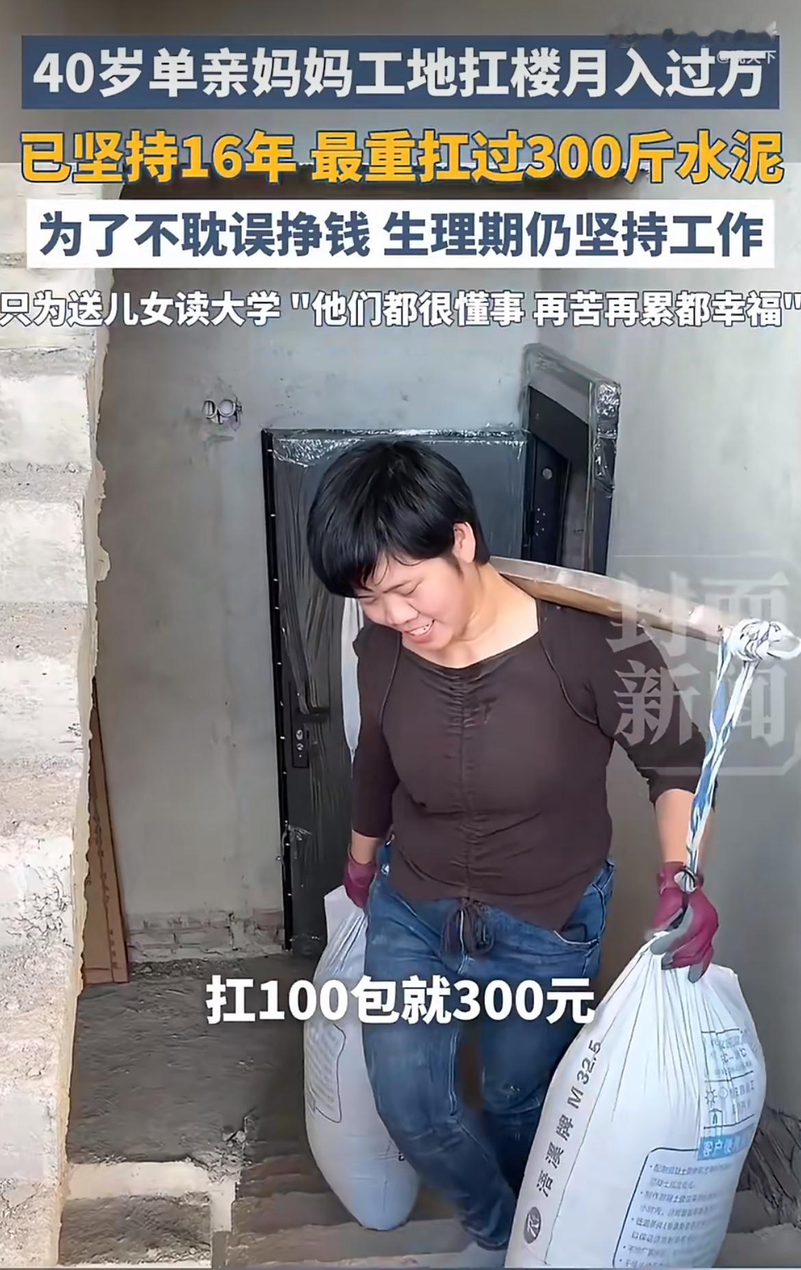 为母则刚!40岁单亲妈妈在工地扛水泥,一次背300斤,生理期都不敢停,就为了那月