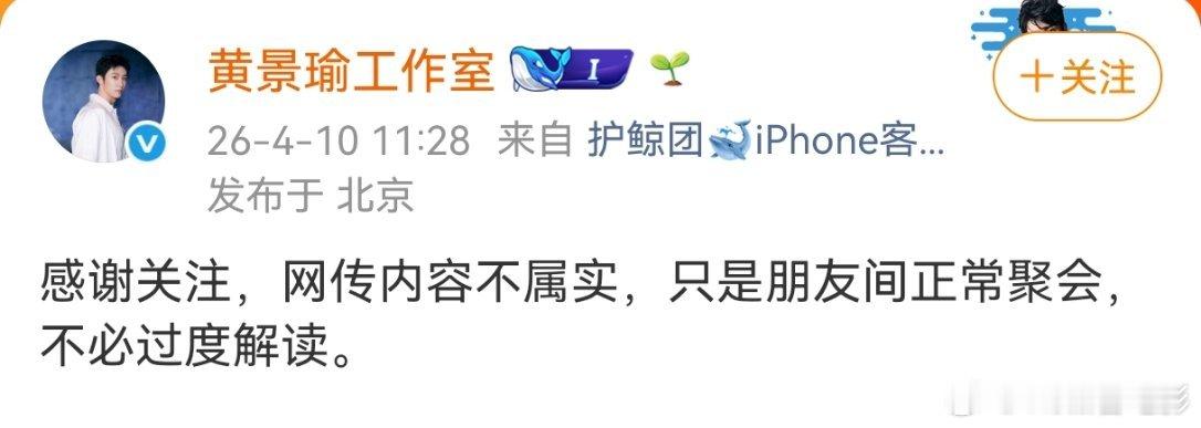 黄景瑜工作室这辟谣速度也太快了哈哈哈哈曝黄景瑜王玉雯恋情