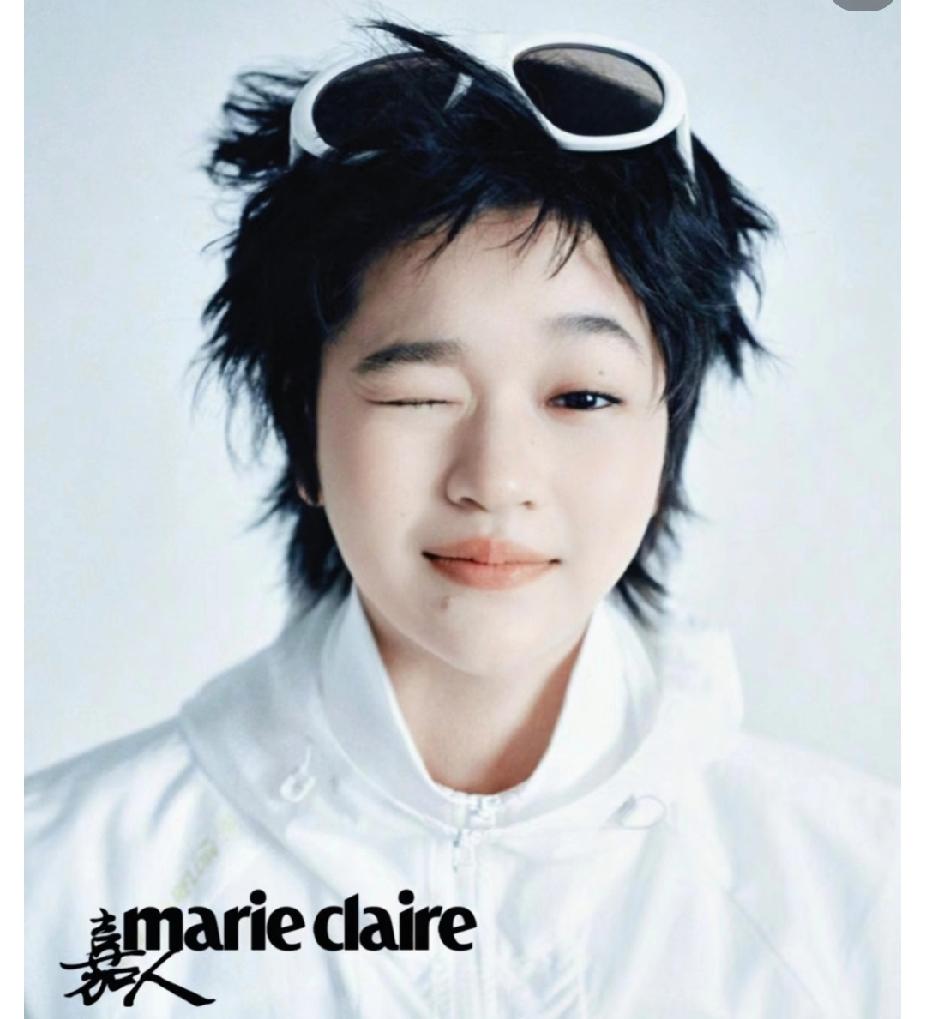 乱糟糟的短发架着白墨镜,眨眼那一下,又酷又灵;