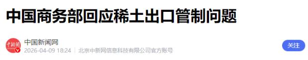 4 月 10 日,商务部宣布:2025 年 10 月施行的稀土出口管制,暂停至 2026 年 11 月 10 日。