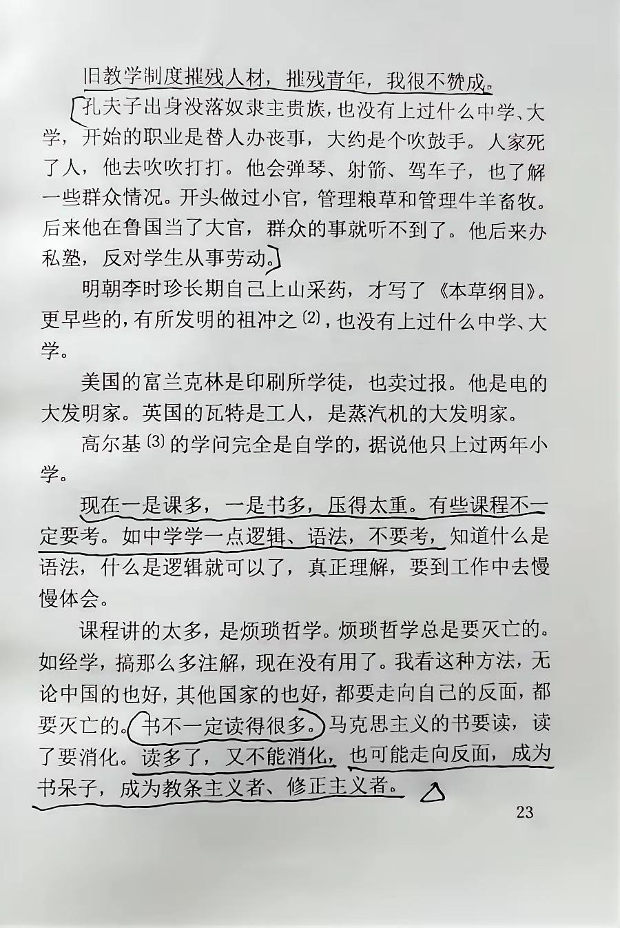 伟人谈教育,说现在课程多害死人,让中小学生长期处于紧张状态,很有可能导致风华正茂的年轻孩子出现早衰!