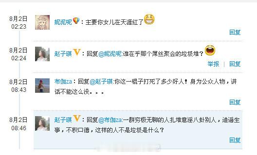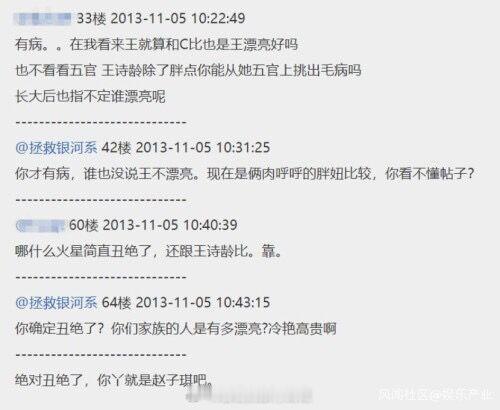 当时爸爸1爆红,网友们肯定是更喜欢王诗龄,况且,大家都不知道赵子琪的女儿是谁。跟帖的网友就说话比较难听,说这个小女孩丑什么的。开贴的楼主突然大爆发的骂人,维护赵子琪女儿。
