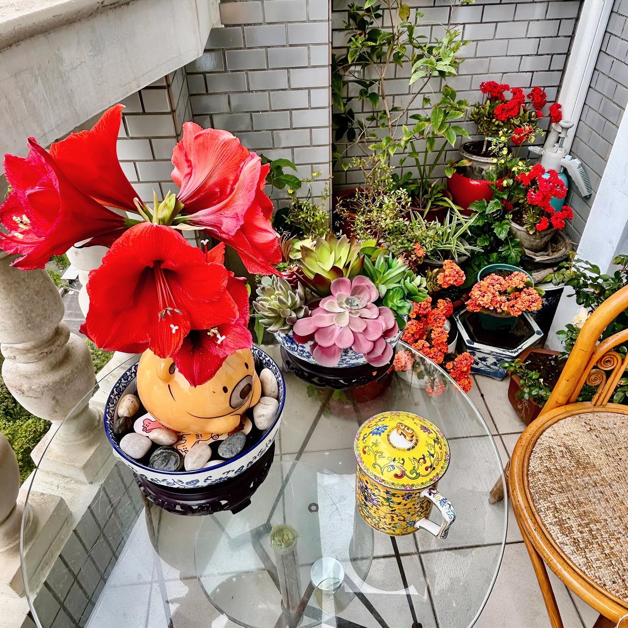寒舍阳台上的长寿花,月季花,朱顶红,迎春盛放,花开朵朵,赏心悦目,在此品茗赏花,不亦乐乎!