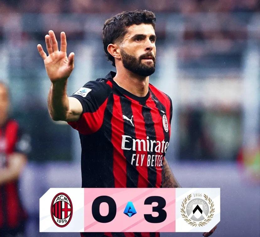 这回终于死心了吧!意甲第32轮AC米兰主场0:3惨败乌迪内斯,遭遇两连败,先赛一