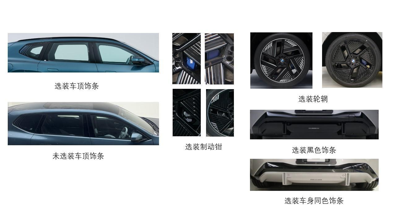 华晨宝马全新iX350L正式申报,这个前脸设计基本还原概念版车型。设计上,这台iX3 50L玩起了个性化选装。从申报图看,提供了车顶饰条(可选装或不装)、制动钳(大概率是高亮色涂装)、黑色饰条和车身同色饰条等多种方案。轮毂造型也有不同选择,配合前255/35R22、后275/35R22的混搭轮胎规格。