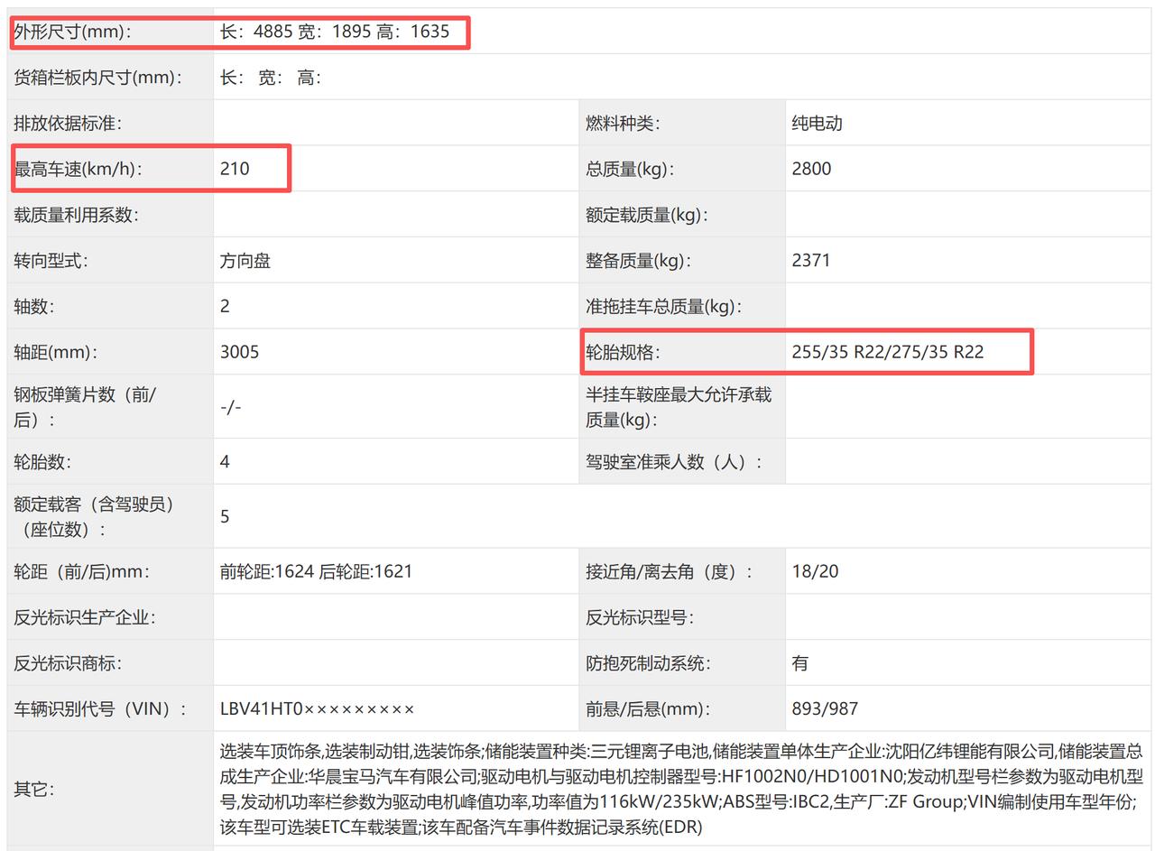 动力部分,这次申报的iX3 50L采用了前后双电机四驱布局,前电机来自采埃孚沈阳,峰值功率116kW,后电机由BMW AG提供,峰值功率235kW,系统综合功率达到351kW(约477马力)!现款iX3 210kW单电机版本一大截,甚至逼近了X3 M40i的性能水平。最高车速 210km/h,搭配宽胎低滚阻轮毂。