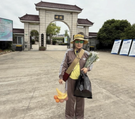 78岁汪明荃回上海老家探亲 带罗家英给祖父母扫墓,顺便踏青赏花