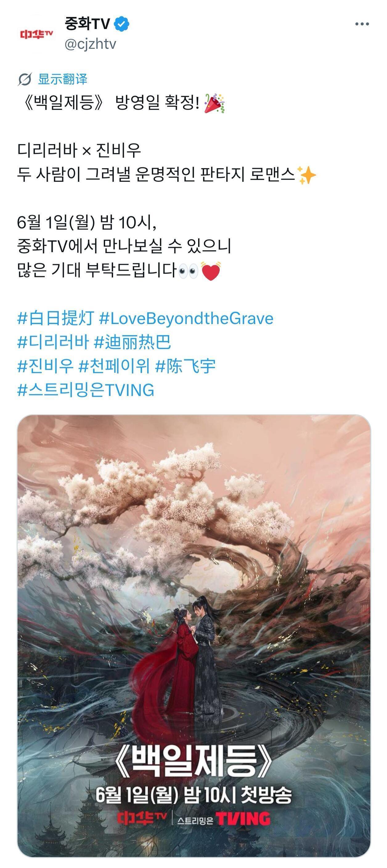 《白日提灯》将于6月1日晚上22点在韩国中华TV播出,又卖了版权,热巴的剧好赚钱