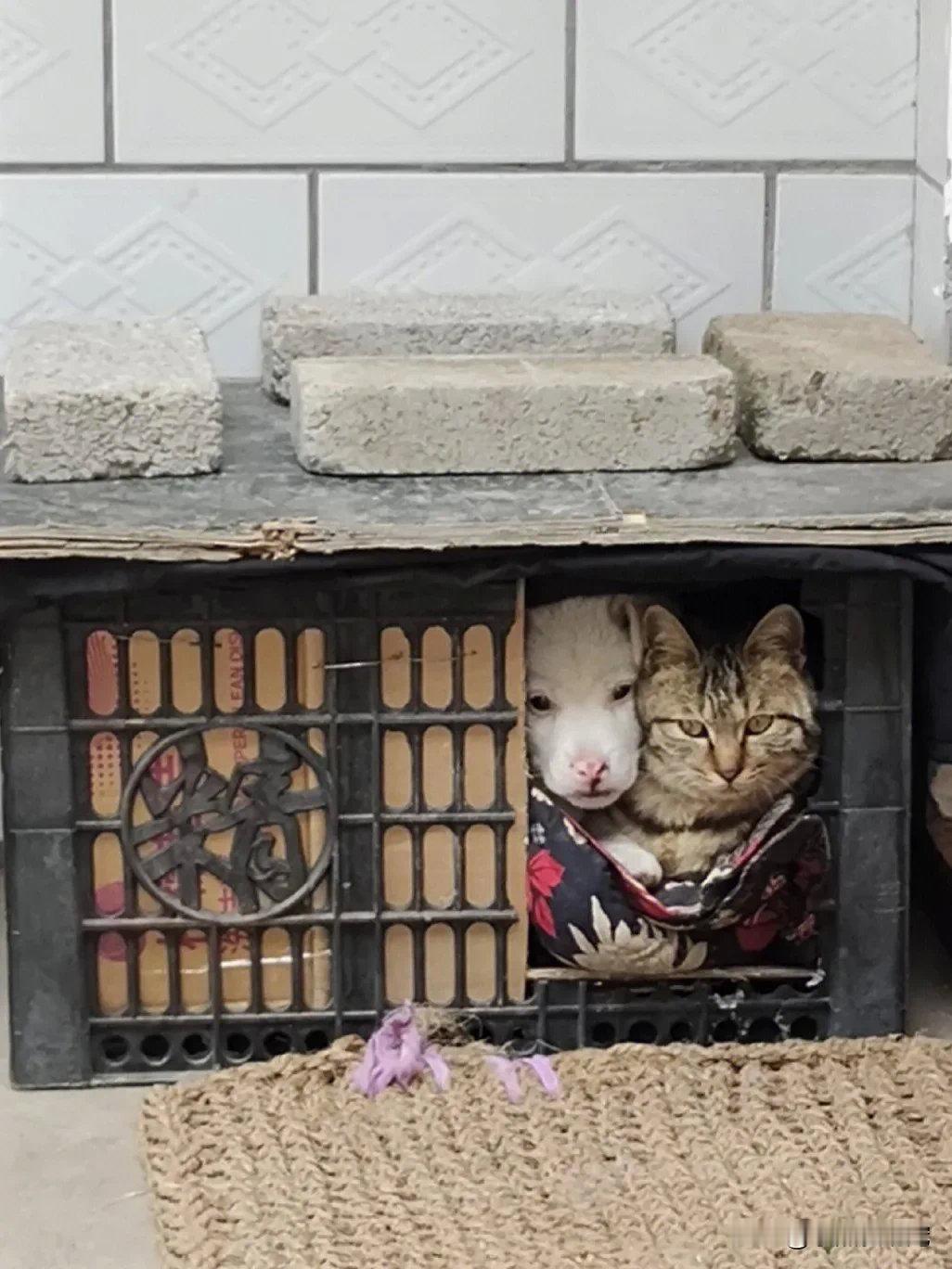 猫咪和狗子一起抱团取暖,真的好可爱啊!