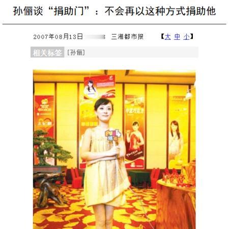 “每月就给我500块,资助不起装什么孙子!”2006年,贫困大学生向海清向媒体怒斥:“我要把孙俪的‘丑事’彻底揭露,孙俪就是个伪君子,她答应资助我到大学毕业,却现在撒手不管了,搞得我连饭都吃不上了,她这根本就是沽名钓誉!”