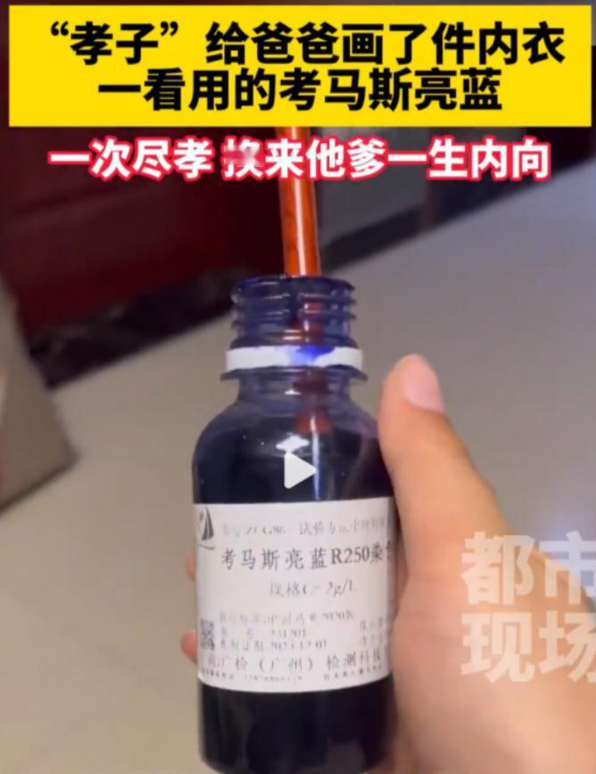 爸爸蹲下身抱住儿子,擦去他的眼泪真诚道歉,耐心讲解考马斯亮蓝的特性,告诉儿子自己不需要女性内衣,让他不必担心。
