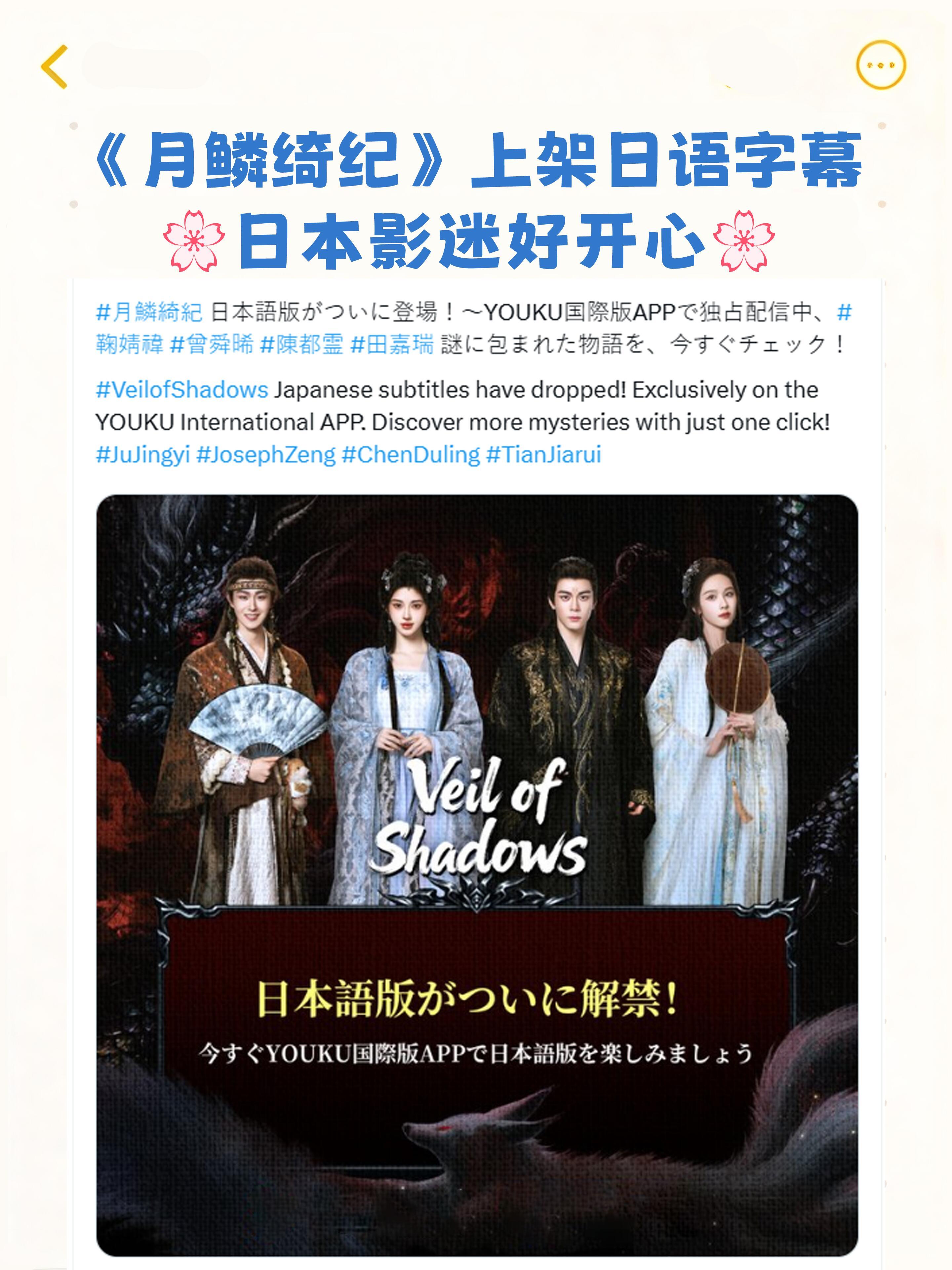 恭喜《月鳞绮纪》上架日语字幕日本影迷好开心鞠婧祎海外粉丝好多的,又要大涨粉啦~