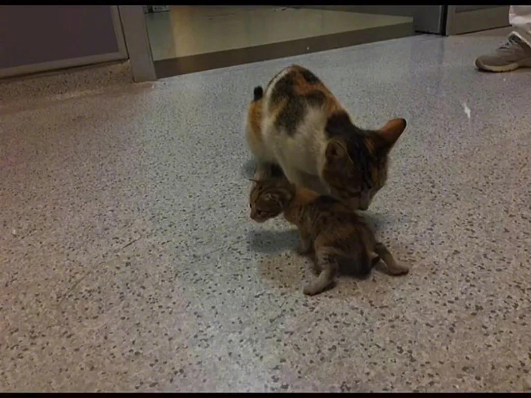 小猫咪生病了,猫妈妈束手无策,于是顶着风险,克服对人类的恐惧,叼着自己的崽崽来到了医院求助,好在医护人员并没有赶走猫妈妈,反而大家都很热心,把小猫咪带走治疗的同时还不忘安慰猫妈妈。为这样的医院和医生点赞!愿世界多一些温暖和美好!