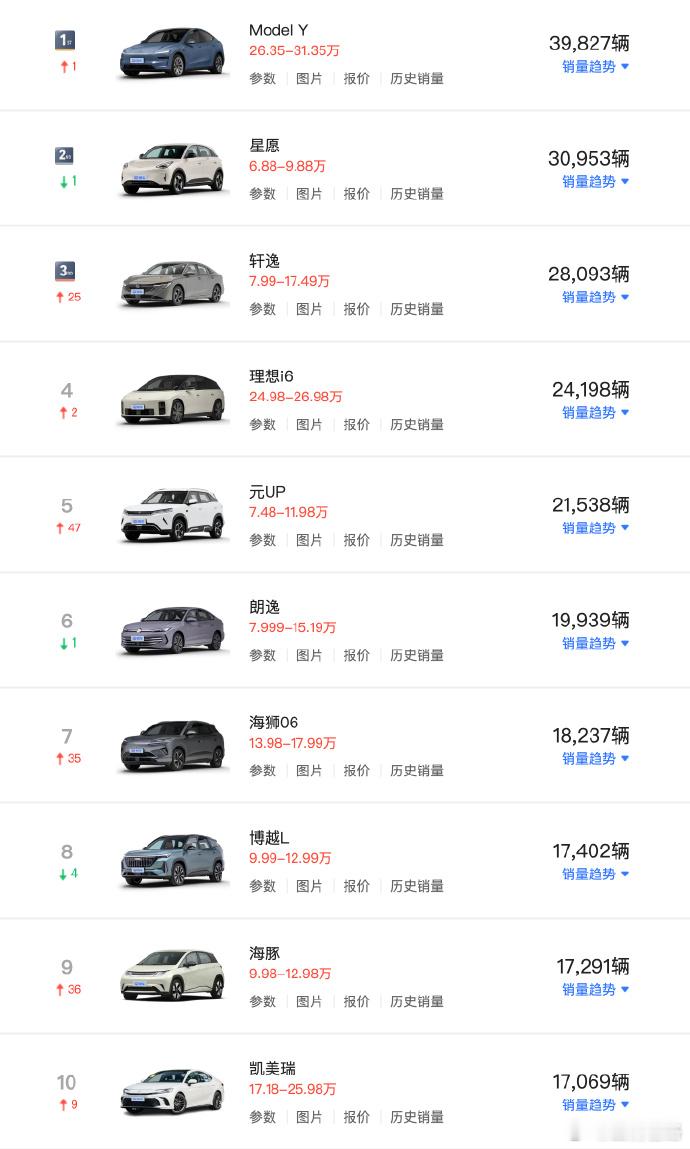 3月最畅销车型TOP20,Model Y重返第一,理想i6创历史新高,小米YU7跌出前二十。