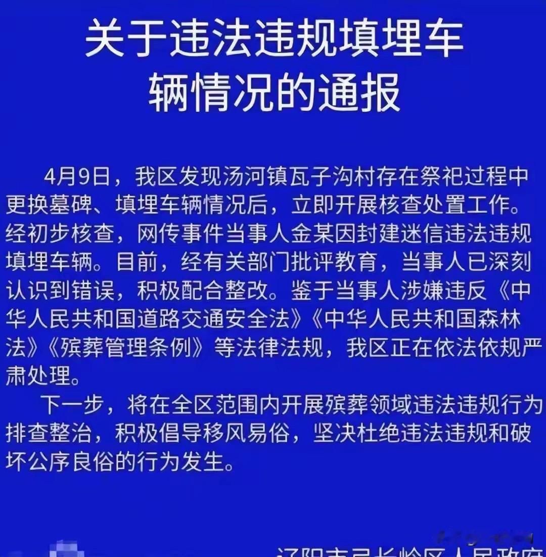 1,埋奔驰车违反殡葬规定,即那个埋车的大坑超过普通标准。
