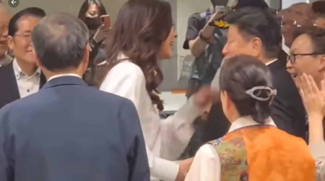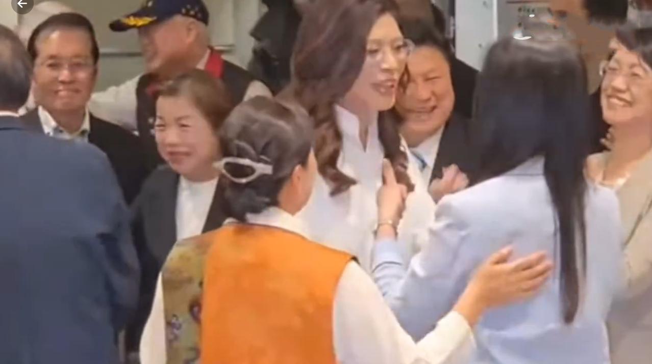 郑丽文抵达桃园机,接机现场很热闹!4月12日下午五点多,郑丽文乘机抵达桃园机场,见到接机成员(同事)张开双臂又是拥抱又是握手,开心极了!从媒体拍摄的视频来看,接机现场人很多,好似迎接大明星似的,大家见到郑丽文都很兴奋。
