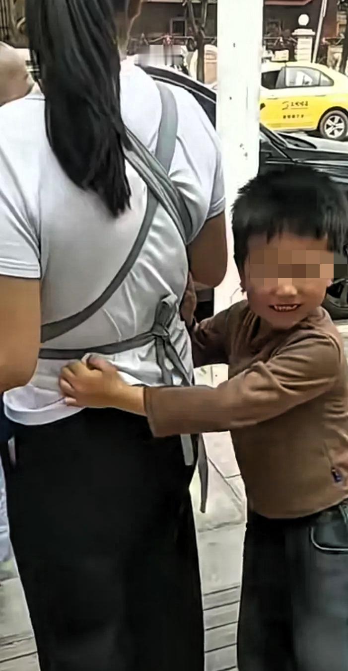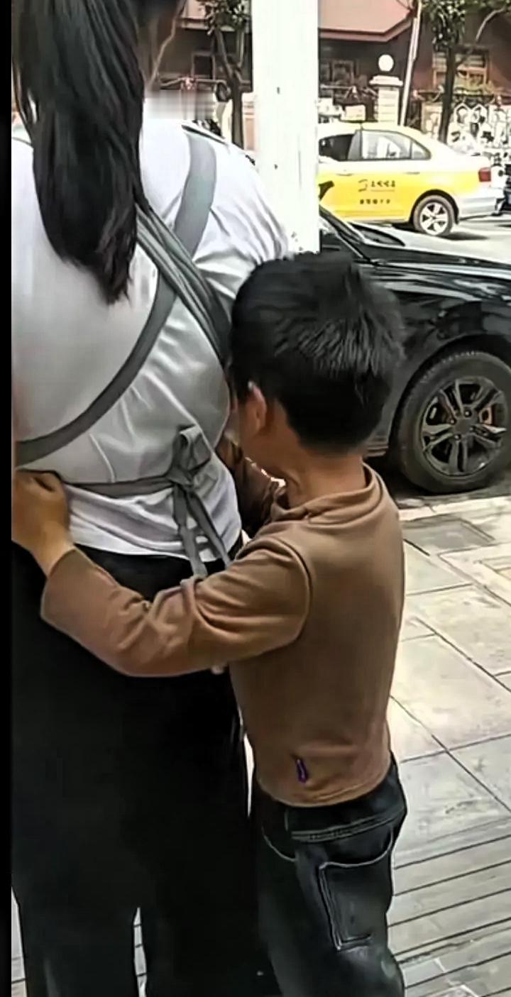心碎了,儿子在街上隅遇离婚一年的妈妈,儿子哭着上前抱住妈妈说:我好想你