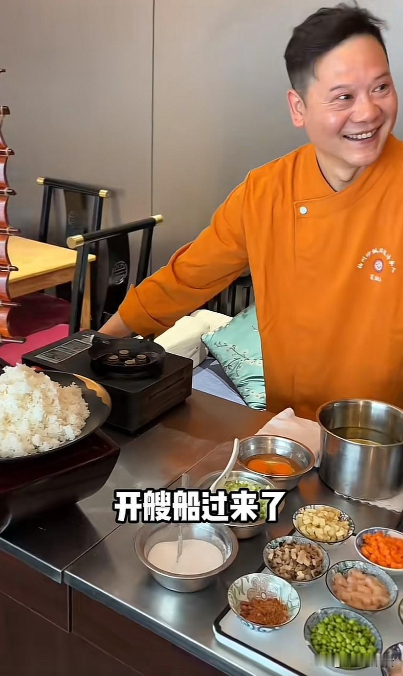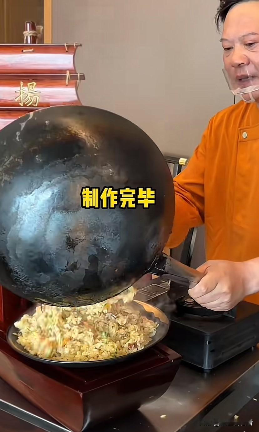 老板亲自制作,确实制作过程不同,炒的时候少油,还用了鸡汤淋里面翻炒,并且还有很长的一段介绍,介绍了扬州炒饭的知识,整个过程一边炒一边说长达十五分钟。