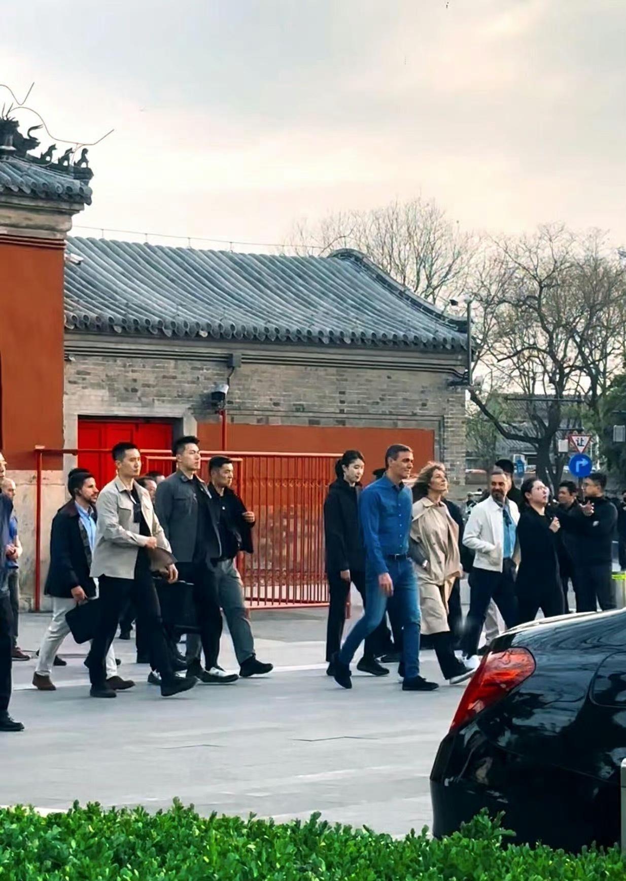 4月11日、12日,西班牙首相桑切斯现身北京鼓楼和颐和园。 话说保镖小姐姐个头