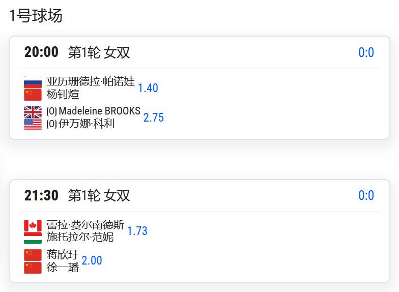 徐一璠/蒋欣圩对阵费尔南德斯/范妮;