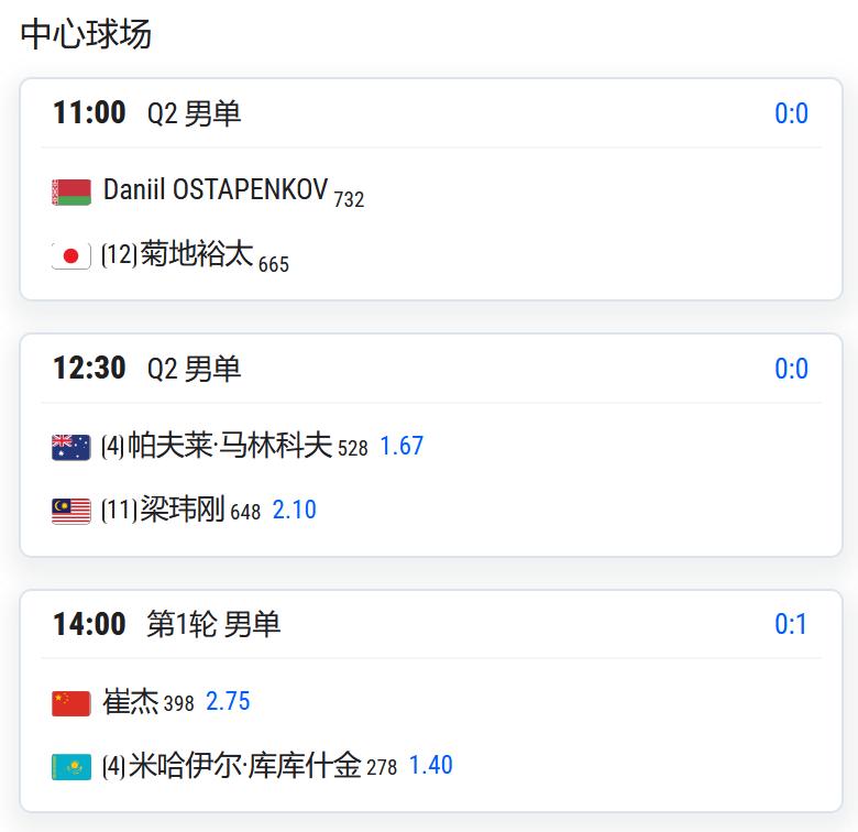 CH50武宁,男单第一轮,崔杰将对阵4号种子库库什金;