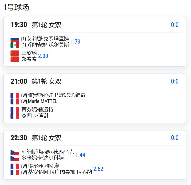 WTA250赛鲁昂站,女双第一轮,郑赛赛/王欣瑜将对阵头号种子克罗玛查娃/沃尔莫斯;