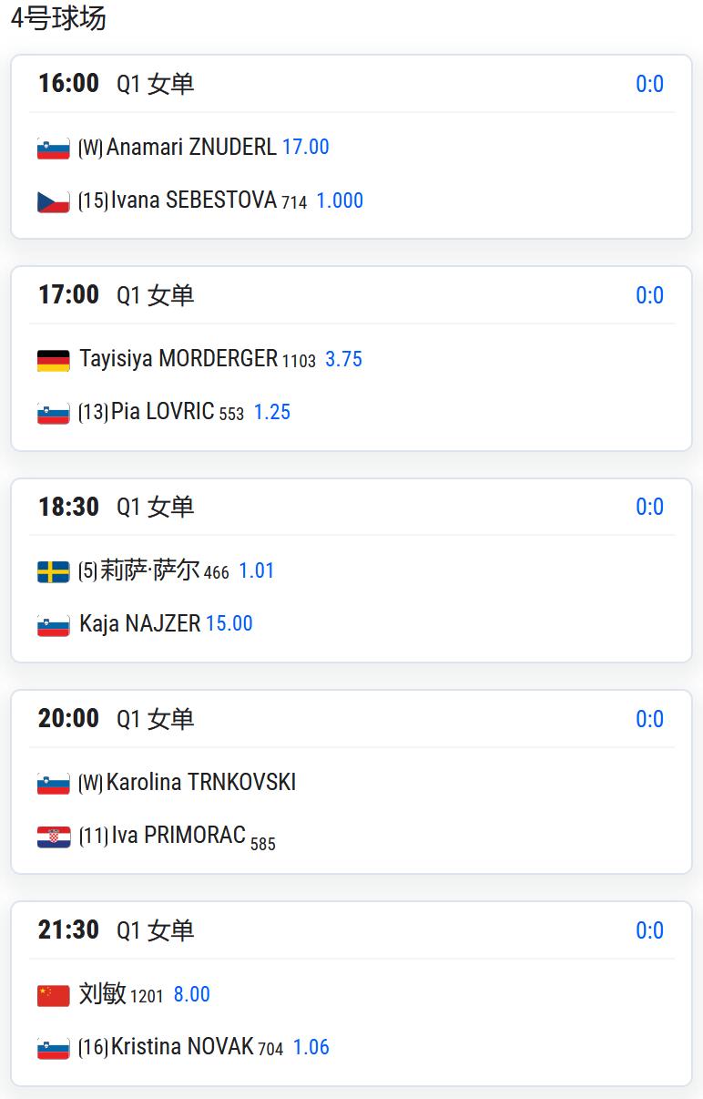 W75波尔托罗,女单资格赛第一轮,刘敏将对阵16号种子诺瓦克;