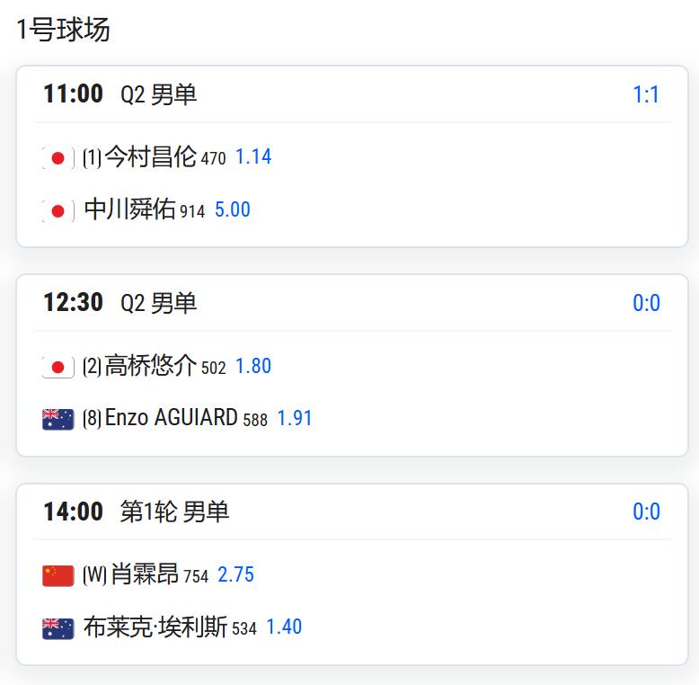 持外卡参赛的肖霖昂将对阵澳大利亚的埃利斯。