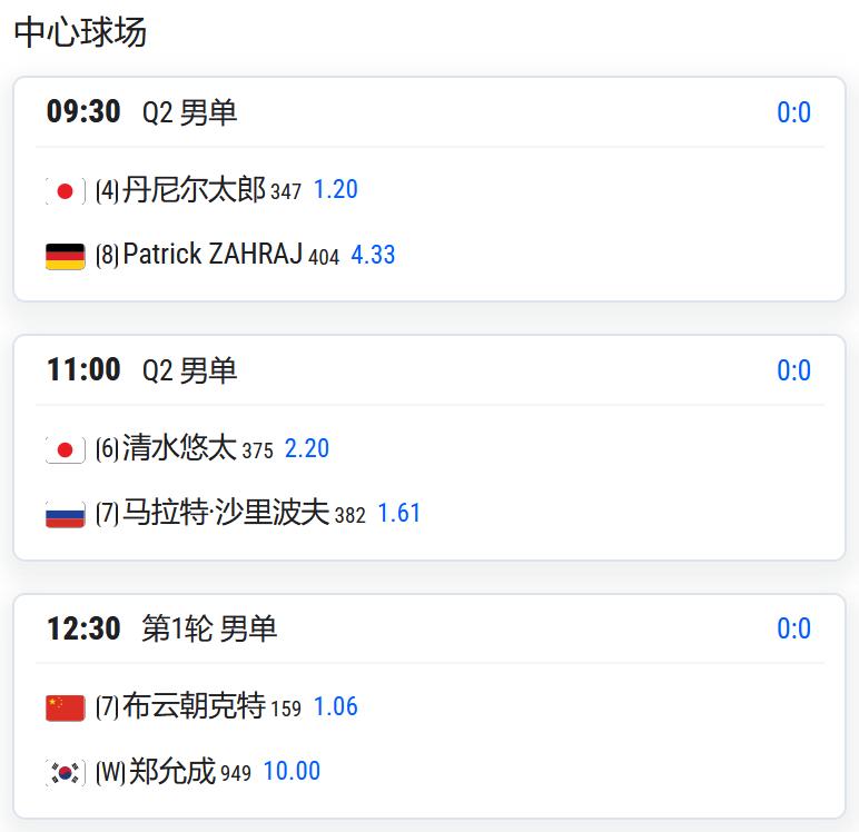 CH125釜山,男单第一轮,7号种子布云朝克特将对阵本土外卡郑允成;
