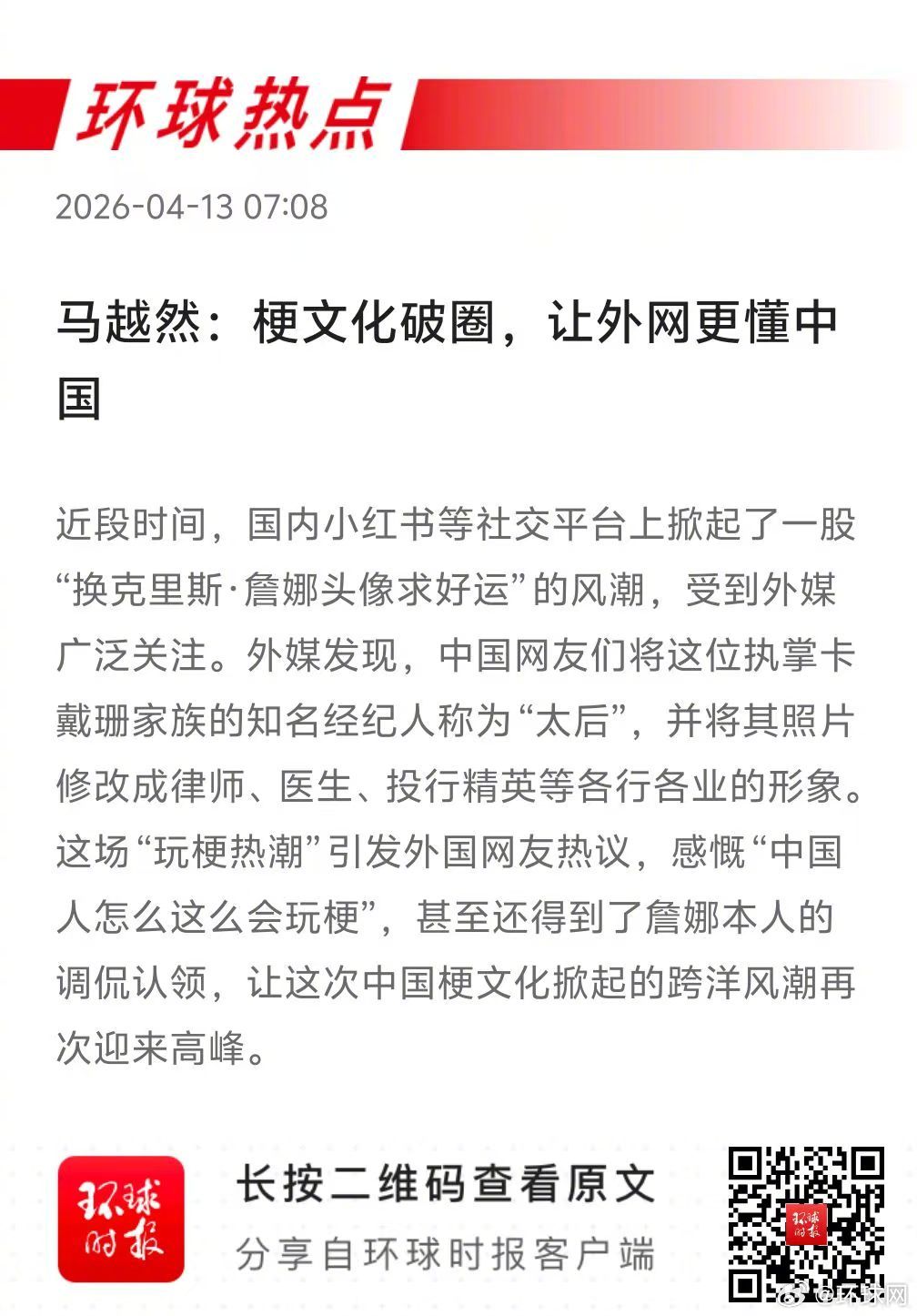 ▲ #克里斯詹娜头像求好运潮引外网热议##环球热点早知道#,了解更多↓