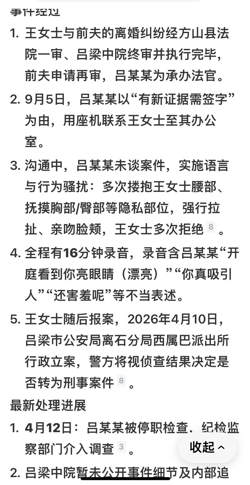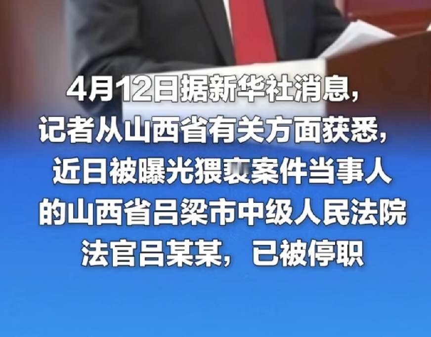 吕梁法官猥亵女当事人最新后续:吕法官已被停职,纪委介入调查,警方已立案,估计他肠